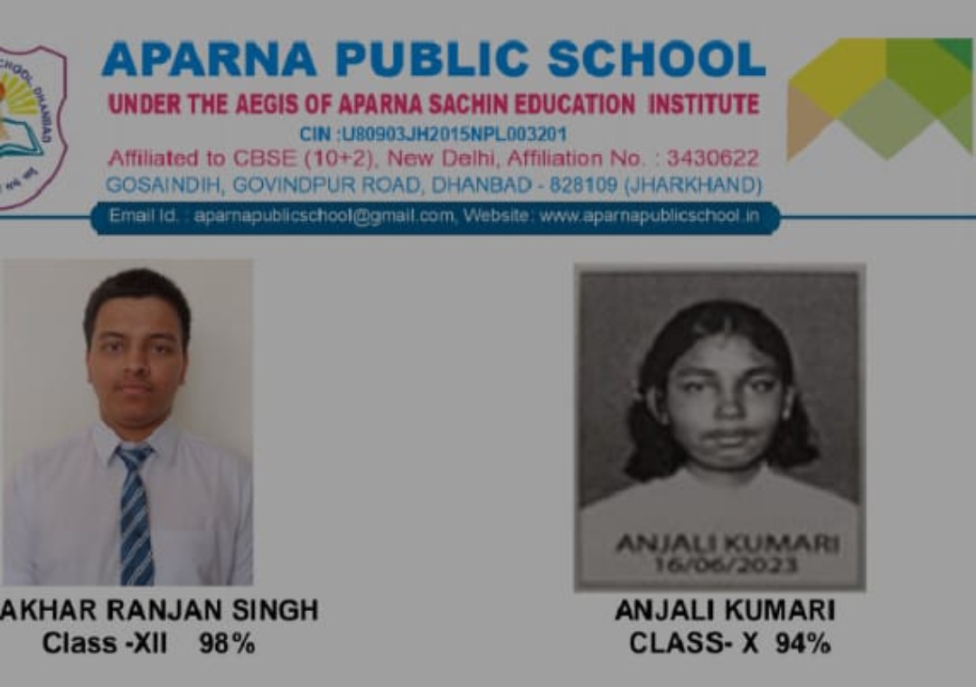 धनबाद : इस वर्ष भी अपर्णा पब्लिक स्कूल के विद्यार्थियों ने केंद्रीय माध्यमिक शिक्षा बोर्ड (सीबीएसई) की 10वीं और 12वीं की परीक्षाओं में शानदार प्रदर्शन कर विद्यालय और शहर का नाम रोशन किया है।
