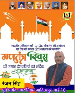 ​सरायकेला/परिसर: राष्ट्रीय पर्व गणतंत्र दिवस के पावन अवसर पर स्थानीय अपर्णा पब्लिक स्कूल के प्रांगण में देशभक्ति का अभूतपूर्व ज्वार देखने को मिला। विद्यालय प्रबंधन द्वारा आयोजित इस समारोह में न केवल तिरंगे की आन-बान और शान का उत्सव मनाया गया, बल्कि भावी पीढ़ी को देश की समृद्ध विरासत और आत्मनिर्भरता के संकल्प से भी जोड़ा गया। कार्यक्रम की भव्यता ने उपस्थित सभी अभिभावकों और अतिथियों को मंत्रमुग्ध कर दिया।