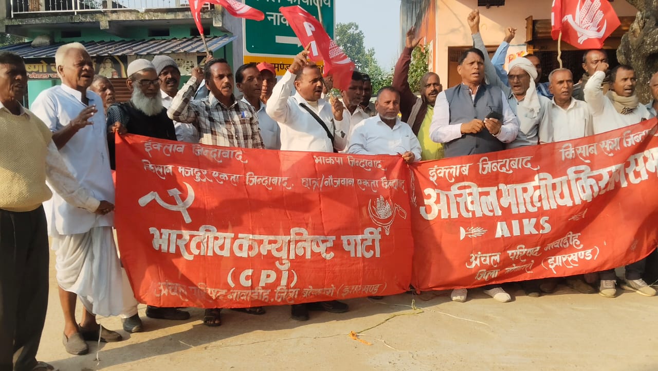 कामरेड गणेश प्रसाद महतो ने अपने सम्बोधन में धरनार्थियों को सम्बोधित करते हुए कहा कि, भारतीय कम्युनिस्ट पार्टी, झारखण्ड राज्य परिषद के फैसले के आलोक दिनांक 7 नवंबर से 15 नवंबर 2025 तक नवंबर क्रांति के अवसर पर ” आंदोलन सप्ताह ” के रूप में पुरे झारखण्ड राज्य में मनाया जा रहा है, उसी फैसले के अनुरूप नावडीह अंचल कमिटी, भा क पार्टी का यह कार्यक्रम है जिसमे राज्य, जिले, व प्रखंड की प्रमुख समस्याओं को चिन्हित कर 15 सूत्री मांगों के समर्थन में धरना कार्यक्रम है! प्रदेश में विकास की सारी परियोजनाओं के लिए कम संसाधन का आवँटन होने से देश की आर्थिक वृद्धि दर पर नकारात्मक असर पड़ रहा है! क़ृषि उत्पाद का उचित मूल्य नहीं मिल पा रहा है, जिससे क़ृषि कार्य करना अब घाटे का सौदा हो गया है, जिसके कारण किसान खेती करना नहीं चाहते! पलायन बढ़ रहा है! ऋण ग्रस्तता के कारण देश में गरीबी, अशिक्षा, बेकारी, कुपोषण है! वन अधिकार अधिनियम ( F R A )का कड़ाई से क्रियान्वयन, वन अधिकार सरंक्षण 2023 एवं जैव विविधता अधिनियम में कारपोरेट हितैषी संशोधन वापस लेने पर सरकार का विचार होना चाहिए! इसके उलटे वन विभाग किसानों से जमीन छीन रही है!उसके बिहार भूदान यज्ञ कमिटी द्वारा आवंटित की गई जमीन पर बाजबरन कब्जा कर रही है! भाकपा लगातार सरकार की दोष पूर्ण, विनाश कारी नीतियों से देश और जनता को बचाने के लिए संघर्ष जारी रखेगा!