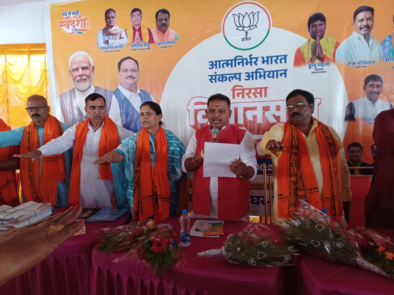 निरसा की तत्कालीन विधायक और झारखंड की पूर्व मंत्री अपर्णा सेनगुप्ता ने निरसा विधानसभा के लोगों को बांग्ला और हिंदी दोनों भाषाओं में संबोधित किया। उन्होंने जनता को समझाया कि आज से ही सभी को स्वदेशी सामान खरीदना चाहिए ताकि हमारा देश आत्मनिर्भर बन सके।