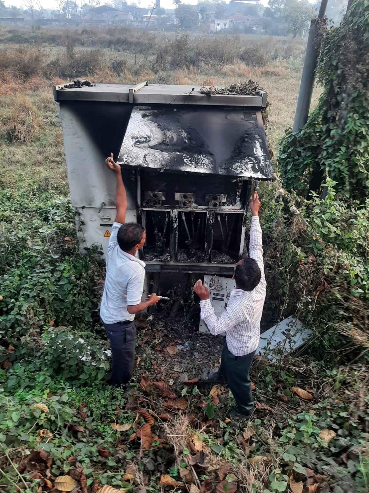 बलियापुर : आमझर गांव के काकड़ागढ़ा के पास लगा विद्युत विभाग का आरएमयू मशीन की चोरी करने के उद्देश्य से सोमवार की आधी रात को अज्ञात चोरों ने मशीन में आग लगा दी। जिससे पूरे इलाके में बिजली ठप पड़ गई। रात भर इलाका अंधेरे में डूबा रहा। मंगलवार की सुबह इसकी मरम्मती के बाद क्षेत्र में बिजली बहाल हो सकी। इस दौरान करीब 7 घंटे तक क्षेत्र में अंधेरा छाया रहा। बिजली बहाल करने के लिए जहां तहां पेट्रोलिंग की गई। सुबह 7:00 बजे चोरों द्वारा अंजाम दी गई उक्त घटना का पता चला। फिर इसकी मरम्मती करने के बाद बिजली बहाल हो पाई। इस संबंध में मुकुंदा पावर स्टेशन के सहायक विद्युत अभियंता सुजीत सिंह ने बताया कि मशीन में आग लगाए जाने से विभाग को करीब 5 लाख की क्षति हुई है। कहा कि आए दिन अज्ञात चोरों द्वारा क्षेत्र में जहां- तहां केबल चोरी तार चोरी आरएमयू मशीन की चोरी या क्षतिग्रस्त करने जैसी घट रही घटनाओं से बिजली विभाग परेशान है। घटनाओं को अंजाम दे रहे अज्ञात चोरों के विरुद्ध पुलिसिया करवाई के प्रति उन्होंने नाराजगी जताया। उन्होंने कहा कि एक महीने पूर्व करमाटांड़ में केवल चोरी करते तीन तार चोरों को पकड़ कर बलियापुर पुलिस को सौपा गया था। वहीं इसके पूर्व पलानी दूधिया एवं हवाई पट्टी के पास आरएमयू की चोरी एवं क्षतिग्रस्त करने की घटनाएं घट चुकी है। सोमवार की रात घाटी उक्त घटना के सिलसिले में बलियापुर थाना प्रभारी को बिजली विभाग द्वारा शिकायत की गई है पुलिस मामले की जांच में जुटी है
