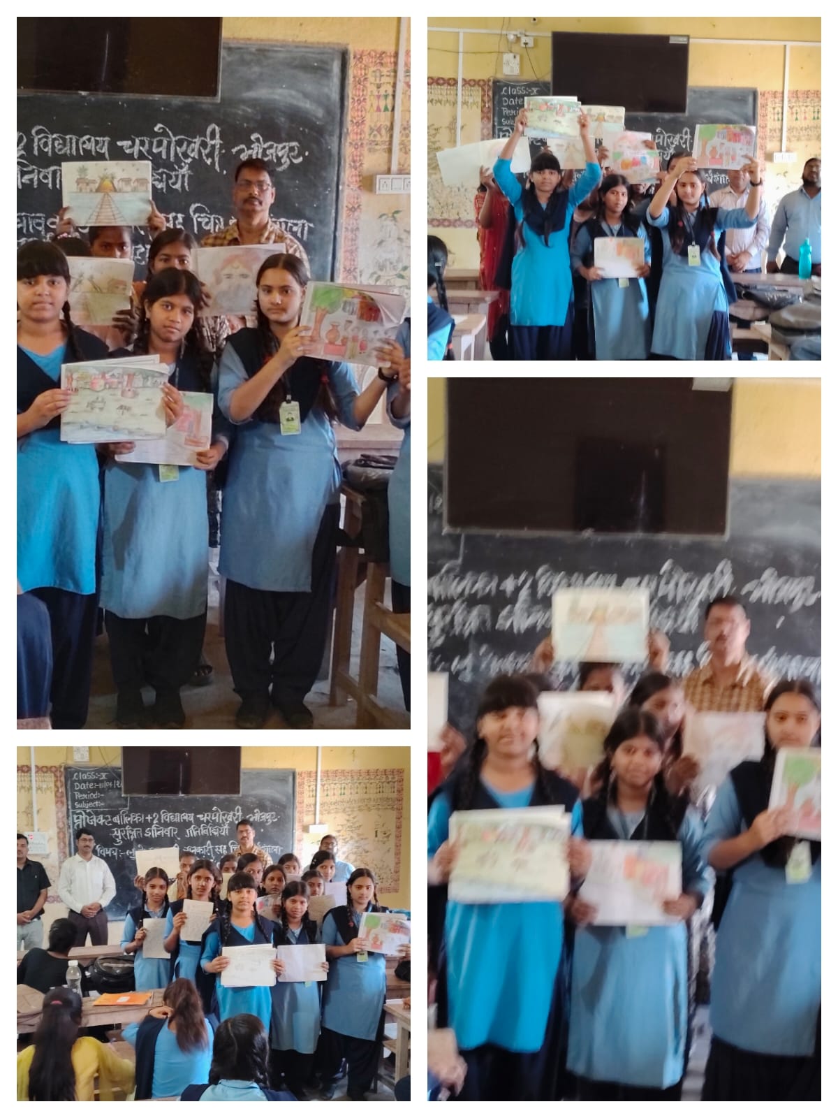 आज स्थानीय प्रोजेक्ट बालिका+2 विद्यालय चरपोखरी भोजपुर के कला प्रेक्षागृह में सुरक्षित शनिवार गतिविधि के साथ – साथ कला गतिविधि आयोजित किया गया। सुरक्षित शनिवार के अंतर्गत विषय रखा गया था,लू से बचाव, साथ में इसी विषय पर छात्राओं को चित्र व पोस्टर सृजन के लिए प्रेरित किया गया। तकरीबन 25 छात्राओं ने अपने अनुभव व समझ को,सौंदर्य दर्शन के साथ विषय के प्रसांगिकता को प्राथमिकता देते हुए चित्र सृजित किया।