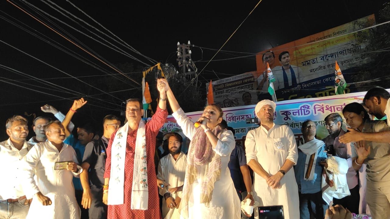 कुल्टी- टी॓एमसी के उम्मीदवार अभिजीत घटक के समर्थन में बराकर पहुंची सिने स्टार एंव संसद सयानी घोष ।