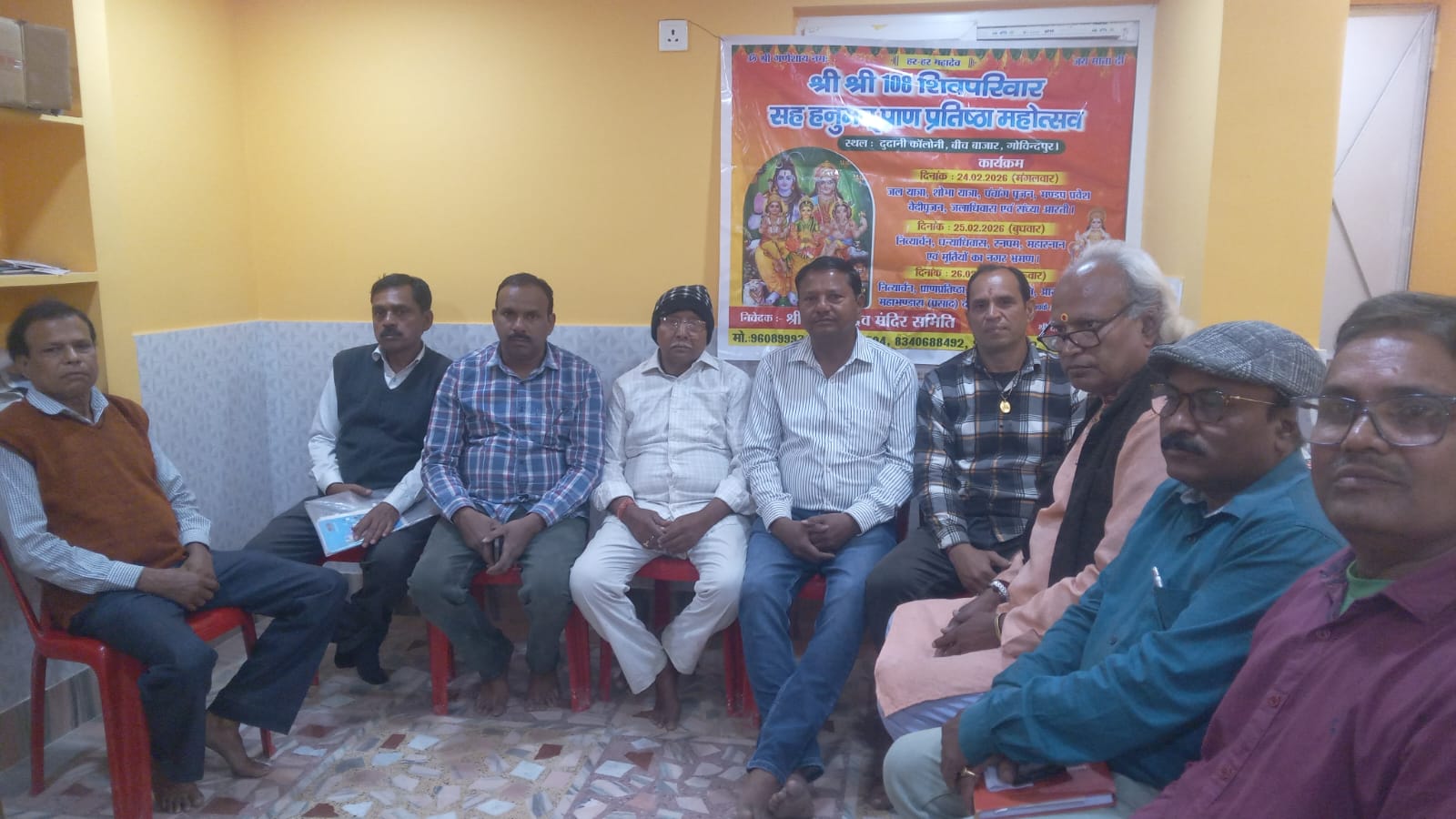 गोविंदपुर (धनबाद): गोविंदपुर स्थित बीच बाजार की दुदानी कॉलोनी में नवनिर्मित महादेव मंदिर में ‘श्री श्री 108 शिव परिवार सह हनुमान प्राण प्रतिष्ठा महोत्सव’ के आयोजन को लेकर शुक्रवार को मंदिर समिति द्वारा प्रेस वार्ता की गई। समिति के अध्यक्ष संजय कुमार अग्रवाल की अध्यक्षता में आयोजित इस वार्ता में तीन दिवसीय धार्मिक कार्यक्रमों की विस्तृत रूपरेखा साझा की गई।