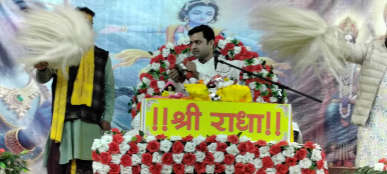 कथा के दौरान जब व्यासपीठ से मधुर भजन “मन जइयो मत भूल राधा रानी के चरण…. सुख रानी राधा रानी के चरण, राधा प्यारी के चरण, श्यामा प्यारी के चरण…” गूंजा, तो पूरा पंडाल भक्तिमय हो गया। उपस्थित भक्त भाव-विभोर होकर अपने स्थान पर खड़े होकर झूमने लगे। वातावरण में केवल राधारानी और श्रीकृष्ण के जयकारे गूंजते रहे।