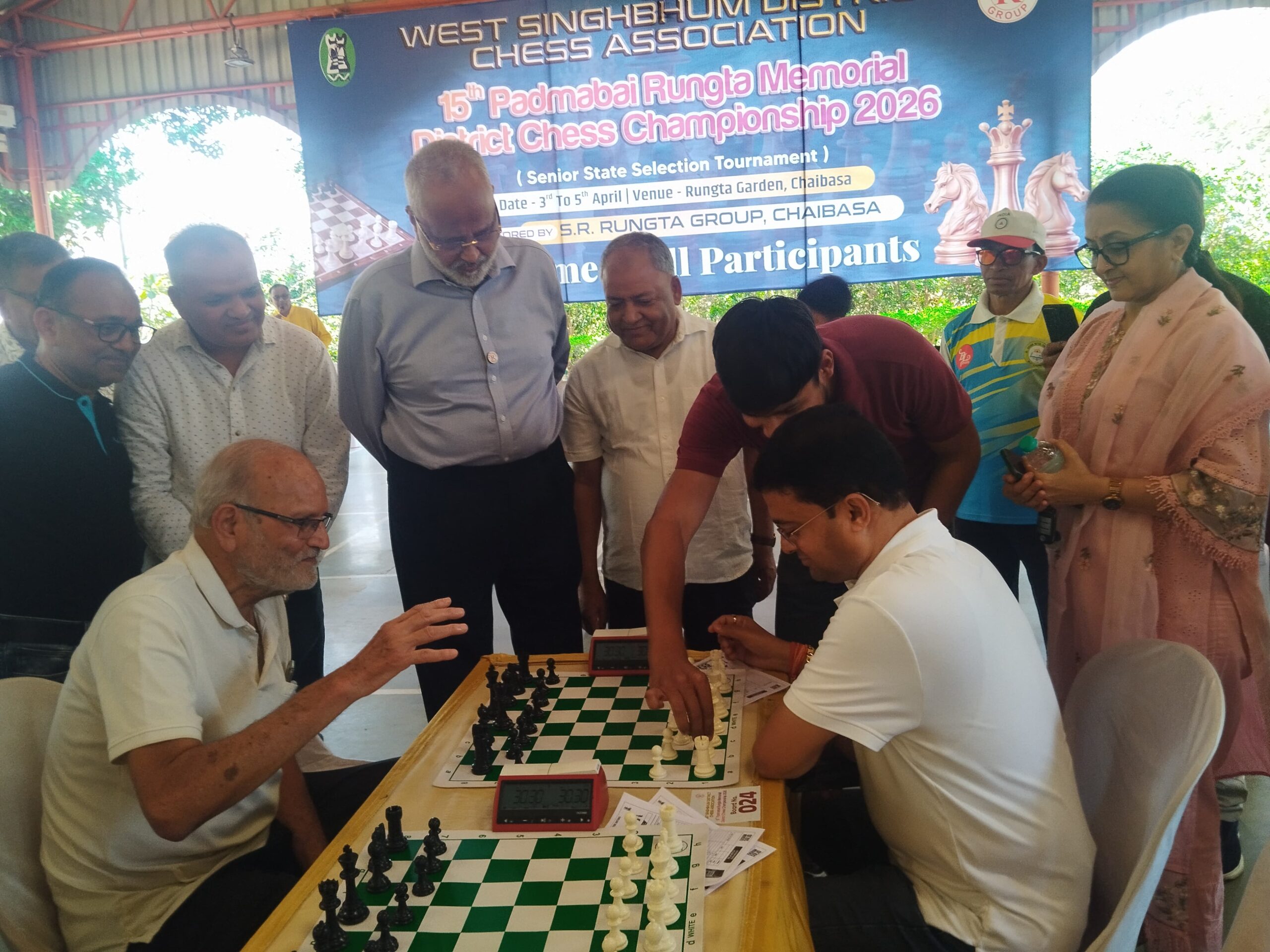 चाईबासा : पश्चिम सिंहभूम जिला शतरंज संघ के तत्वाधान में एवं एस आर रुंगटा ग्रुप के सौजन्य से आयोजित 15वी पदमाबाई रुंगटा मेमोरियल जिला शतरंज प्रतियोगिता का उद्घाटन संघ के अध्यक्ष मुकुंद रूंगटा, संरक्षक एवं नगर पालिका अध्यक्ष नितिन प्रकाश, संरक्षक दीपेंद्र प्रसाद साव, सोहनलाल मुंद्रा, पवन खिरवाल,डॉ वीणा मूंदड़ा एवं संघ के महासचिव बसंत खंडेलवाल ने संयुक्त रूप से दीप प्रज्वलित करके किया।