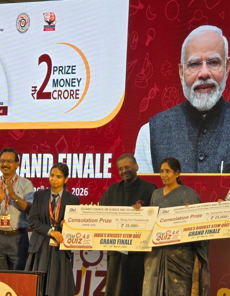 राँची | 26 मार्च 2026: झारखंड के शिक्षा जगत के लिए आज गौरव का क्षण है। गुजरात सरकार द्वारा आयोजित प्रतिष्ठित ‘नेशनल STEM क्विज़ 4.0’ के ग्रैंड फिनाले में क्रेसेंट इंटरनेशनल स्कूल की छात्रा इंशा अरज़ू ने अपनी मेधा का लोहा मनवाते हुए पूरे देश में चौथा स्थान हासिल किया है। इस शानदार उपलब्धि के लिए उन्हें ₹25,000 की नकद पुरस्कार राशि और प्रशस्ति पत्र देकर सम्मानित किया गया।