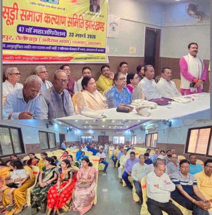झारखंड सुड़ी समाज कल्याण समिति का 47वॉ वार्षिक महाअधिवेशन महाराज अग्रसेन भवन में धनबाद में संपन्न, अधिवेशन की शुरुआत दीप प्रवज्वलित कर किया गया, तत्पश्चात शहीदे आज़म भगत सिंह,शहीद मनिंद्र नाथ मंडल,स्व कंसारी मंडल,स्व ठाकुर दास मंडल के छाया चित्र पर सभी समाजप्रेमियो ने पुष्प अर्पित कर श्रधांजलि अर्पित की,महाधिवेशन की अध्यक्षता कार्यकारी अध्यक्ष रेखा मंडल ने किया तथा मंच का सफल संचालन केंद्रीय महासचिव गौतम मंडल और जिला महासचिव सैलेन मंडल ने संयुक्त रूप से किया,