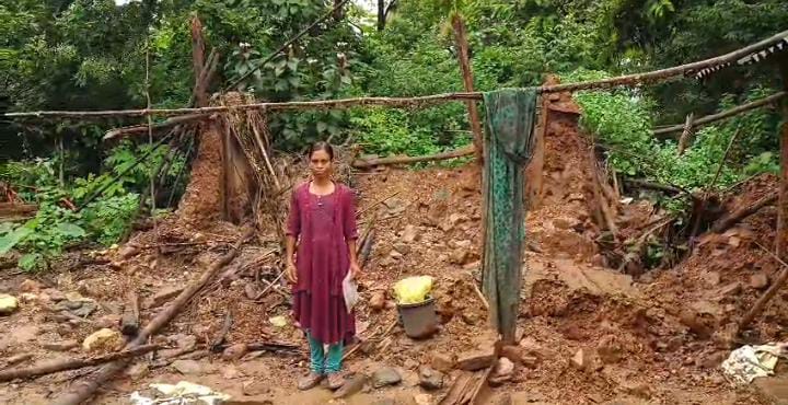 दलमा की तराई में बसे माकुलाकोचा गांव में बारिश से ढहे मिट्टी के घर, ग्रामीण आंगनबाड़ी केंद्र में शरण लेने को मजबूर