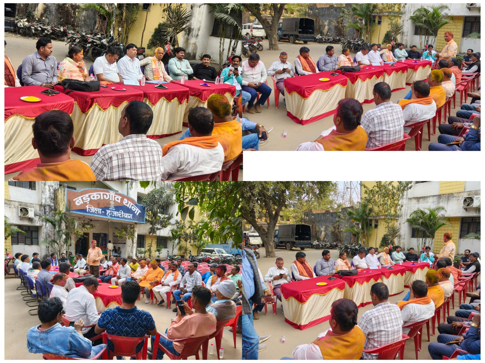 थाना प्रभारी कृष्ण कुमार गुप्ता ने लोगों से कहा कि होली को भाईचारगी के साथ मनाए आसपास पड़ोस के लोगों को भी होली में सहयोग करें। पूर्व विधायक लोकनाथ महतो ने कहा कि नशे के कारण लोग आपस में लड़ बैठते हैं इसलिए त्यौहार में कृपया नशे से दूर रहें ताकि आप परिवार के साथ शांतिपूर्वक होली मना सके। अंचलाधिकारी मनोज कुमार ने कहा कि होली में हुड़दंगी करने से बचे मारपीट से दूर रहें।