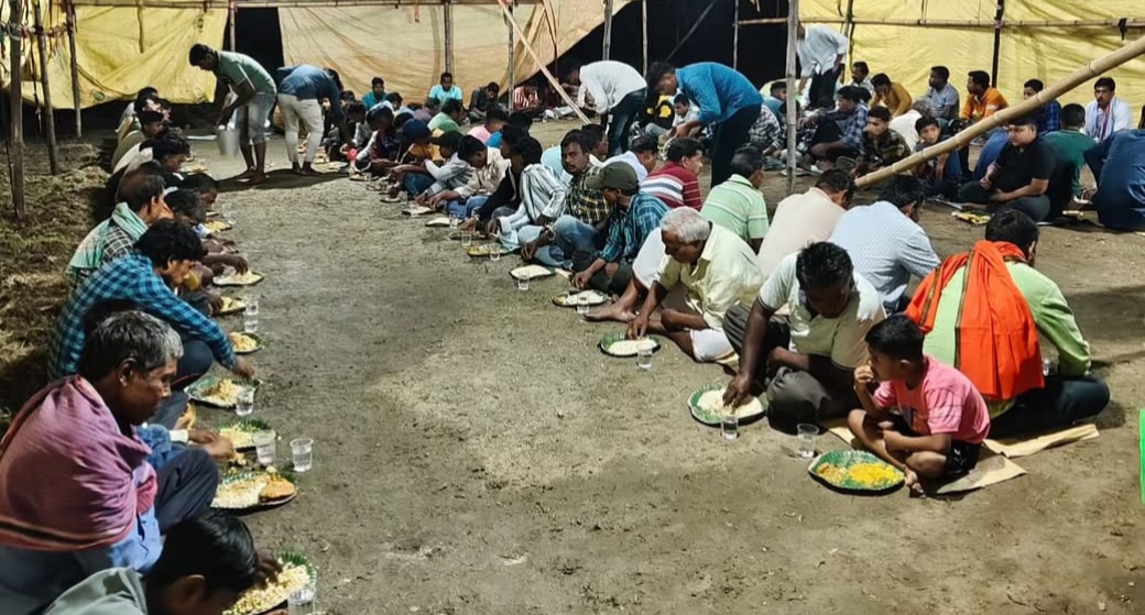 भंडारे में हजारों श्रद्धालु कर रहे प्रसाद ग्रहण