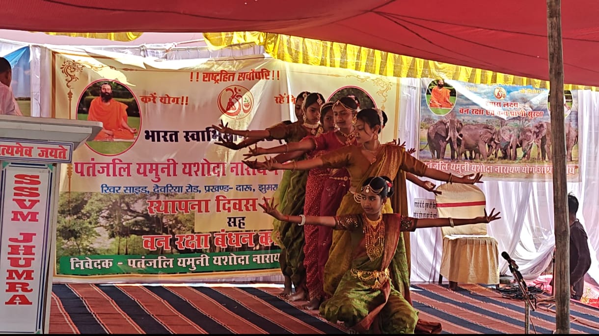 दारू (हजारीबाग)। कोय क्षेत्र स्थित पतंजलि यमुनि यशोदा नारायण योग आश्रम का स्थापना दिवस समारोह उत्साह और गरिमा के साथ मनाया गया। कार्यक्रम की शुरुआत राष्ट्रगान से हुई। इसके बाद उपस्थित लोगों ने वन एवं वन्य जीवों की सुरक्षा की शपथ ली। समारोह के दौरान पर्यावरण संरक्षण के प्रति जागरूकता फैलाने के उद्देश्य से पेड़ों का रक्षाबंधन किया गया, जिसमें बड़ी संख्या में लोगों ने भाग लिया। इस अवसर पर योग, सामाजिक जागरूकता और संस्कृति का सुंदर समन्वय देखने को मिला। सांस्कृतिक कार्यक्रम में स्वामी विवेकानंद विद्यालय के बच्चियों ने इस मौके पर बढ़ चढ़कर भाग लिया और अपने कला कौशल को प्रस्तुत किया।