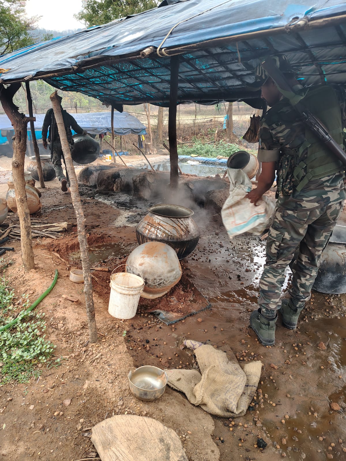 रामनवमी से पहले पुलिस का ‘ऑपरेशन क्लीन’: राजनगर के जंगलों में 3 शराब भट्ठियां ध्वस्त, 1400 KG महुआ नष्ट।