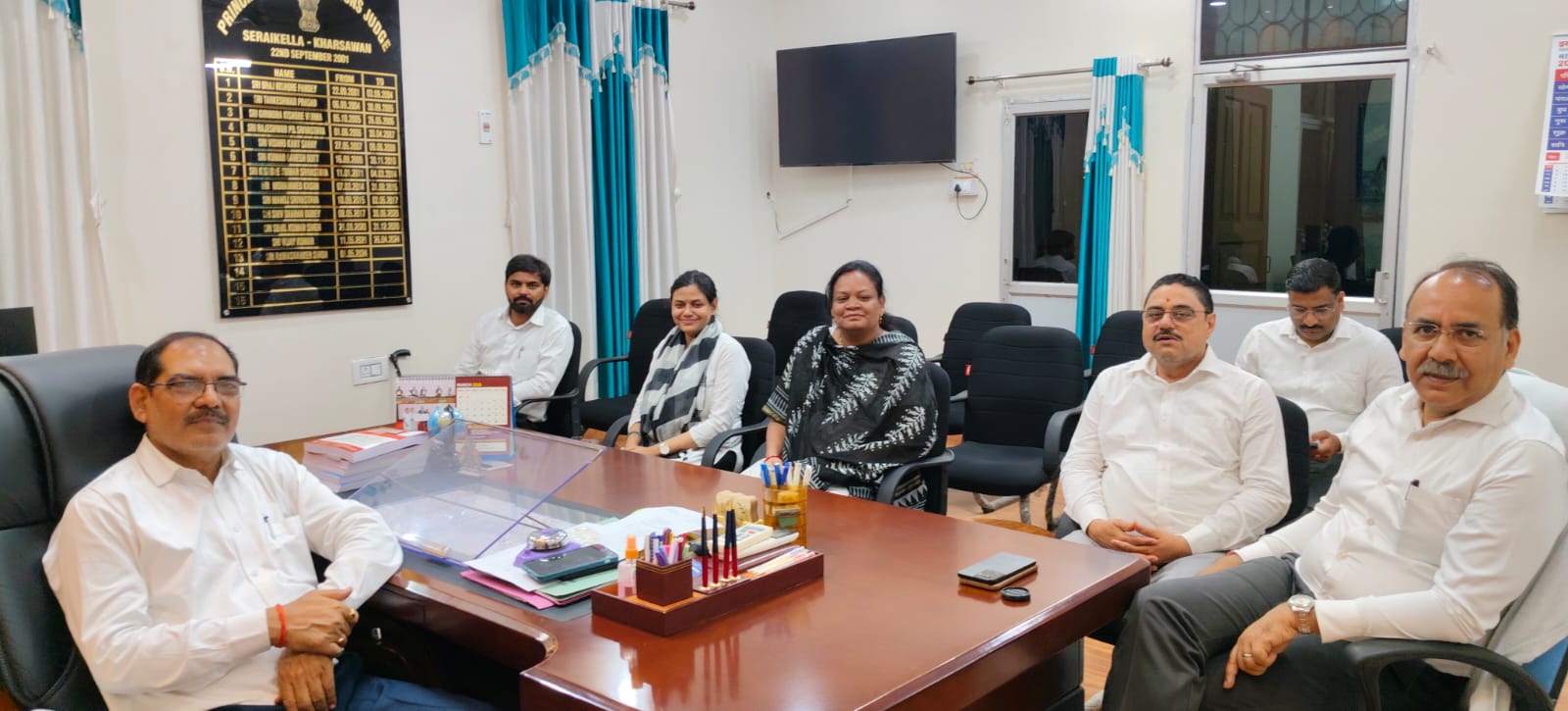 बैठक में प्रधान न्यायाधीश, परिवार न्यायालय सरायकेला श्री बीरेश कुमार, जिला एवं सत्र न्यायाधीश-प्रथम सरायकेला-खरसावां श्री ब्रज किशोर पांडेय, मुख्य न्यायिक दंडाधिकारी सरायकेला सुश्री लूसी सोसेन टिग्गा, जिला विधिक सेवा प्राधिकरण के सचिव श्री तौसिफ मेराज, अनुमंडल न्यायिक दंडाधिकारी सरायकेला श्री आशीष अग्रवाल तथा न्यायिक दंडाधिकारी प्रथम श्रेणी सरायकेला श्रीमती धृति धैर्य उपस्थित थे।
