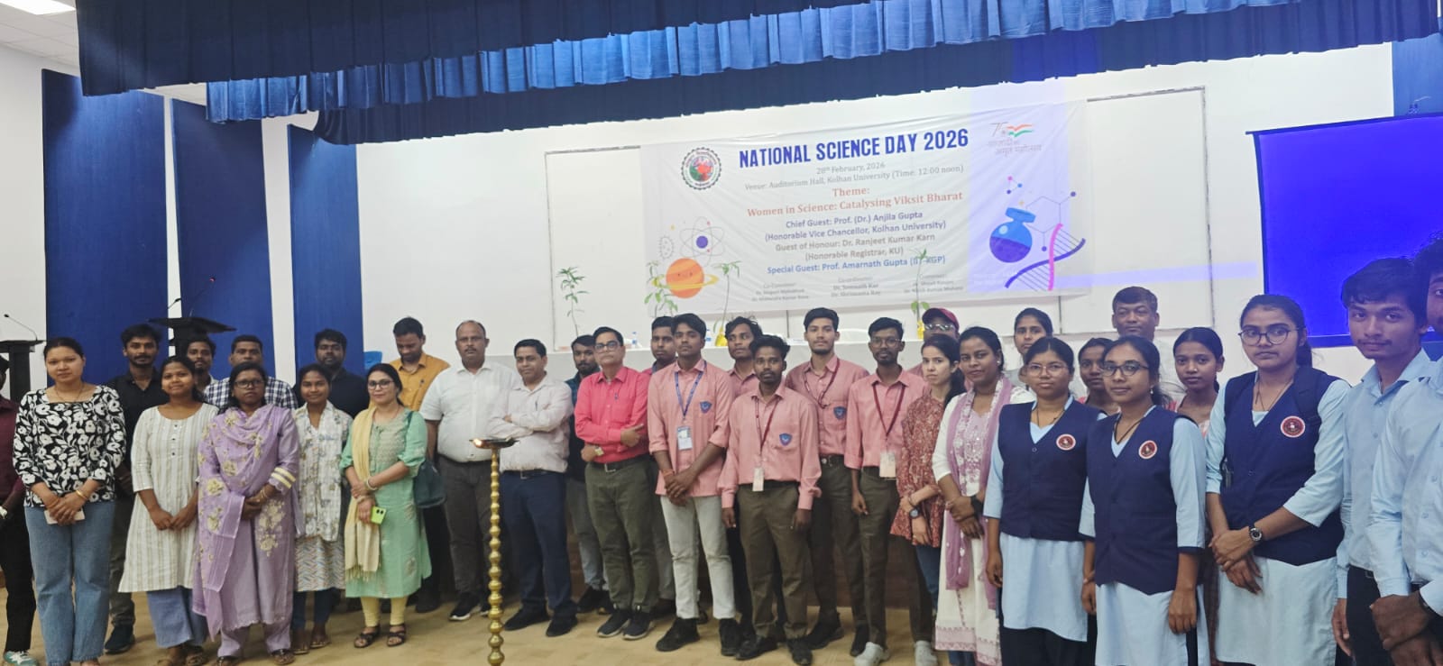 चाईबासा, 28 फरवरी 2026। राष्ट्रीय विज्ञान दिवस के अवसर पर विश्वविद्यालय में एक भव्य कार्यक्रम ‘विज्ञान में महिलाओं का योगदान’ विषय पर विकसित भारत की दिशा में विचार मंथनका’ आयोजन किया गया। कार्यक्रम का शुभारंभ दीप प्रज्वलन के साथ हुआ। मुख्य अतिथि के रूप में प्रो. अमरनाथ गुप्ता (आईआईटी खड़गपुर) एवं अन्य गणमान्य अतिथियों का स्वागत एवं सम्मान किया गया। कार्यक्रम में लगभग 20 संकाय सदस्यों और 60 विद्यार्थियों की सहभागिता रही।