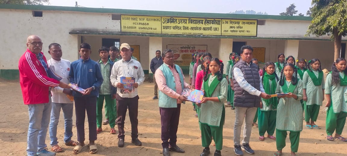 सरायकेला/चांडिल: नक्सल-प्रभावित चांडिल अनुमंडल के उत्क्रमित विद्यालय हेसाकोचा में आज एक प्रेरणादायक कार्यक्रम आयोजित किया गया। वरिष्ठ पत्रकार बसंत कुमार साहू ने विद्यालय के लगभग 100 छात्रों को किताबें और एक विशेष ज्ञान-सत्र वितरित किया।