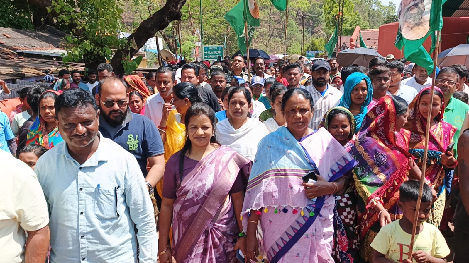 गुवा : नोवामुंडी प्रखंड के गुवा में सेल प्रबंधन द्वारा स्थानीय लोगों को विस्थापित किये जाने के मामले को लेकर शुक्रवार को सांसद जोबा माझी गुवा पहुंची। सांसद के साथ झामुमो जिलाध्यक्ष सोनाराम देवगम, सचिव राहुल आदित्य, प्रवक्ता बुधराम लागुरी समेत जिला परिषद अध्यक्ष लक्ष्मी सुरेन, जिला परिषद सदस्य देवकी कुमारी, मुखिया चाँदमनी लागुरी भी उपस्थित रही। यहां पहुंचने पर विस्थापित परिवार और झामुमो समर्थकों ने सांसद का जोरदार स्वागत किया। गुवा में विस्थापन और सेल प्रबंधन द्वारा किये जा रहे अन्याय के संबंध में विस्थापितों ने बारी-बारी से अपनी व्यथा सुनाई। विस्थापितों ने कहा उनके पूर्वजों ने अपने खून पसीने से सेल को सींचा है। लेकिन आज हमें नई परियोजना के नाम पर घर से बेदखल किया जा रहा है।