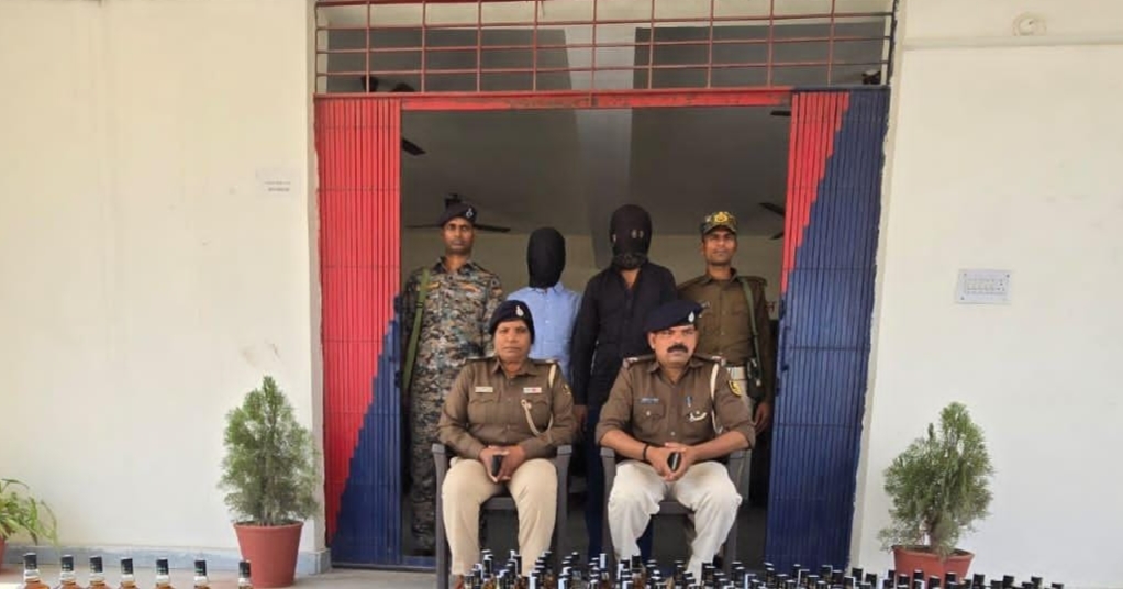 होंडा सिटी कार से 348 बोतल विदेशी शराब बरामद, दो तस्कर गिरफ्तार