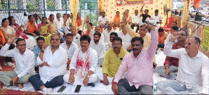 आदित्यपुर। झारखंड में बिजली दरों में हुई बेतहाशा बढ़ोतरी और प्रीपेड मीटर लागू करने के विरोध में आज भारतीय जनता पार्टी सरायकेला-खरसावां जिला कमेटी द्वारा आकाशवाणी चौक पर धरना-प्रदर्शन किया गया।