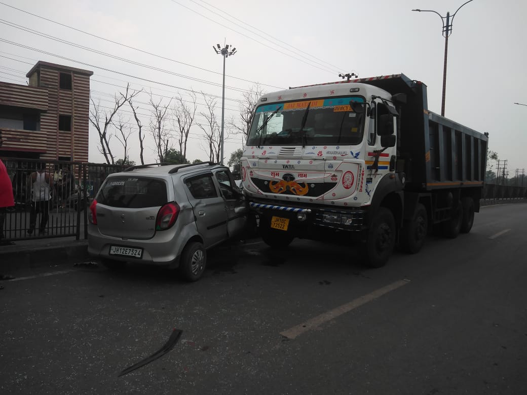 हाईवा ट्रक व कार की हुई जोरदार टक्कर में कार चालक हुआ घायल