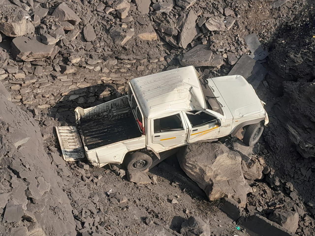 हादसा: अचानक वाहन का संतुलन बिगड़ा और वह लगभग 30 फीट गहरी खाई में समा गया।