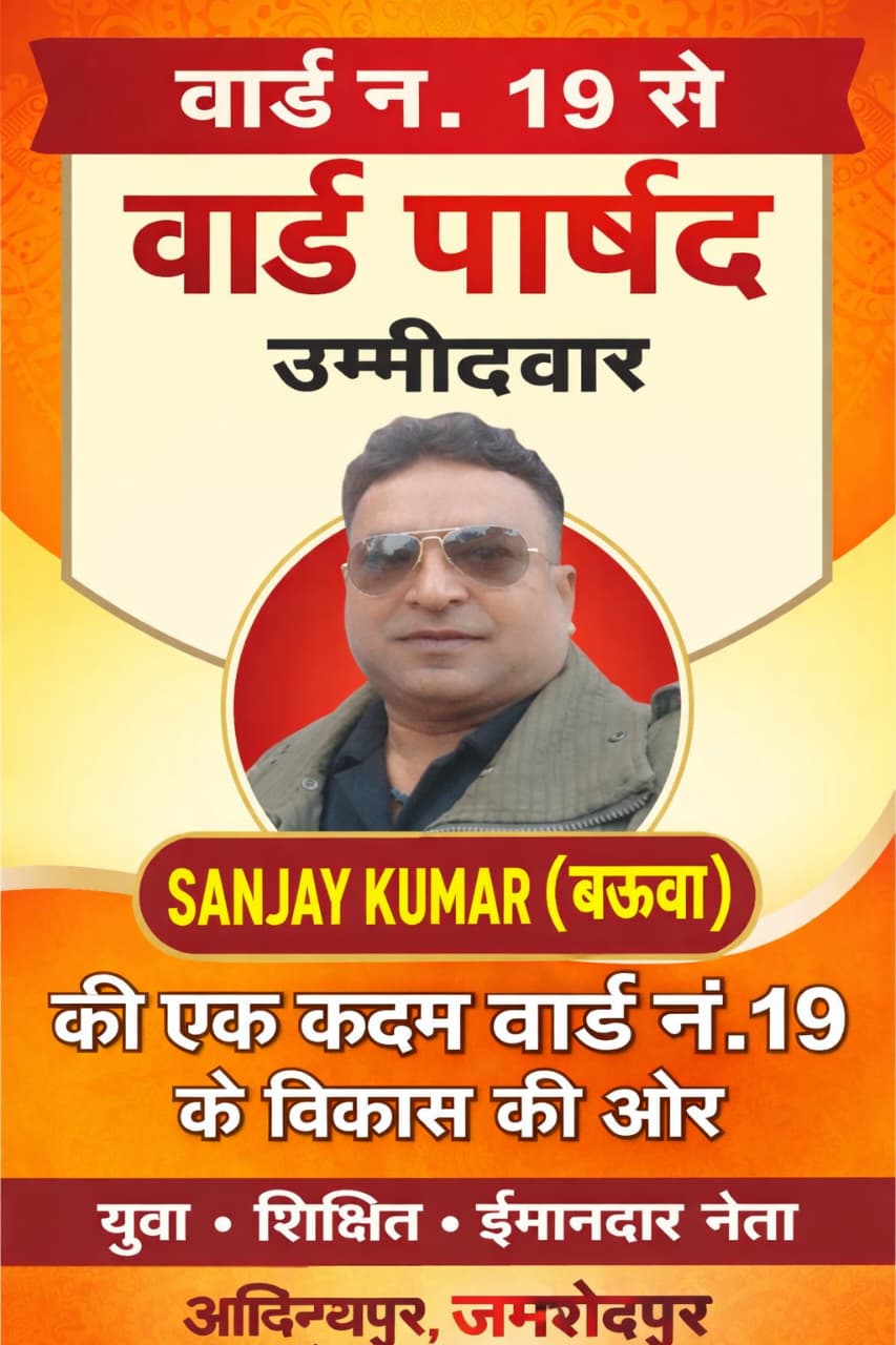 इसी क्रम में आदित्यपुर नगर निगम के वार्ड संख्या 19 से पार्षद पद के लिए संजय कुमार उर्फ बाउवा ने चुनावी मैदान में उतरने की घोषणा की है।