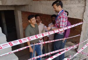 आदित्यपुर। आदित्यपुर थाना रोड में अवैध निर्माण के खिलाफ आदित्यपुर नगर निगम ने बड़ी कार्रवाई करते हुए बिना अनुमति बनाए जा रहे निर्माणाधीन भवन को सील कर दिया।