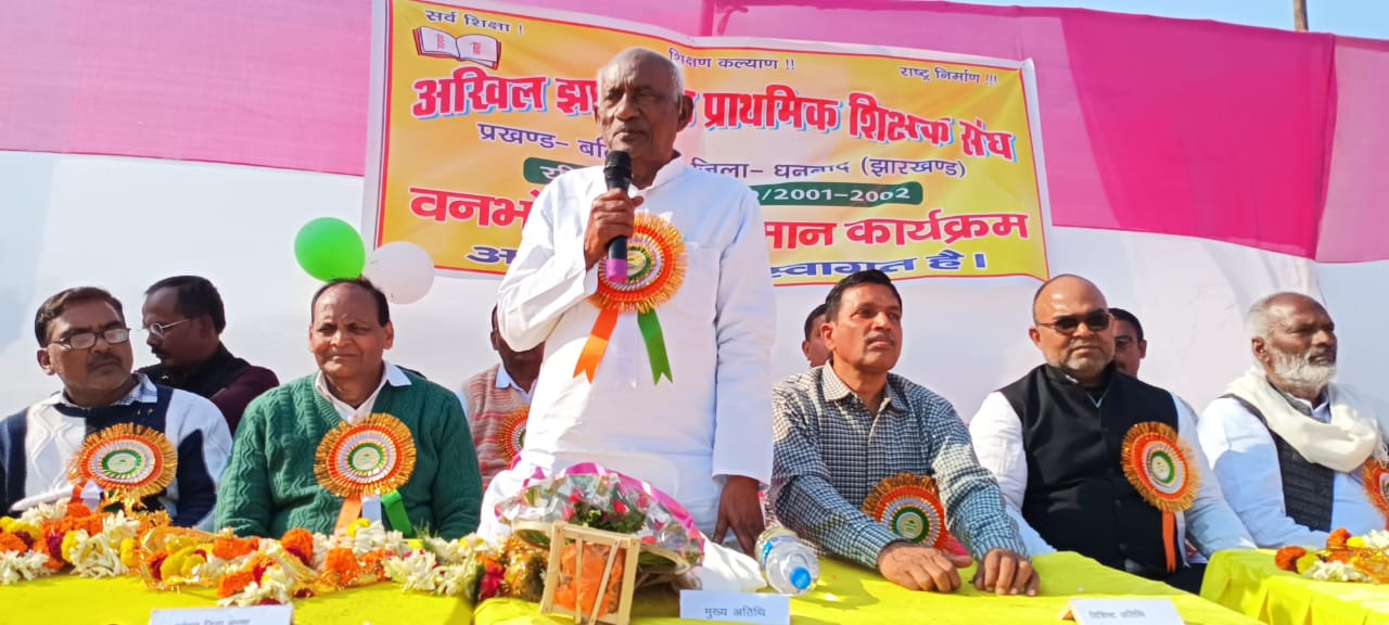 बलियापुर: अखिल झारखंड प्राथमिक शिक्षक संघ शाखा बलियापुर का एकदिवसीय संगोष्ठी रविवार को गणतंत्र दिवस के मौके पर बलियापुर हवाई पट्टी मैदान में आयोजित किया गया। मुख्य अतिथि पूर्व विधायक आनंद महतो ने शिक्षकों को संबोधित करते हुए देश की वर्तमान शिक्षा व्यवस्था पर विस्तार ढंग से चर्चा किया। कहा कि सिर्फ प्राथमिक शिक्षा तक ही शिक्षा के संवैधानिक अधिकार को सीमित कर दिया गया है। ऐसी स्थिति में देश में व्याप्त गरीबी के कारण लोग उच्च शिक्षा प्राप्त नहीं कर पा रहे हैं। देश में अभी भी पढ़ाई कमाई एवं दवाई का समुचित व्यवस्था नहीं है। शिक्षकों की कार्यक्षमता को बढ़ाने के लिए भी कोई व्यवस्था नहीं है। महतो ने शिक्षकों से शिक्षा के विकास में बेहतर कार्य करने को कहा। कार्यक्रम के दौरान शिक्षक नेताओं ने अपने कर्तव्य का पालन करते हुए संगठित होकर अपने अधिकार के लिए संघर्ष करने पर बल दिया। वक्ताओं में बीईईओ रीना कुमारी, शिक्षक नेता सियाराम सिंह, संजय कुमार, नंदकिशोर सिंह, राजकुमार वर्मा, संजीव भगत, मृत्युंजय कुमार, दिलीप, करण, संजीव कुमार पासवान, मृत्युंजय कुमार आदि शामिल थे। इस अवसर पर मुख्य अतिथि पूर्व विधायक श्री महतो एवं बीईईओ रीना कुमारी को संविधान की प्रति भेंट कर तथा शाल ओढ़ाकर सम्मानित किया गया। समारोह का संचालन अशोक कुमार सिंह कर रहे थे। स्वागत भाषण अशफाक खान ने दिया। शिक्षिका क्रिस्टीना हांसदा की अगुवाई में शिक्षिकाओं ने स्वागत गान प्रस्तुत किया।
