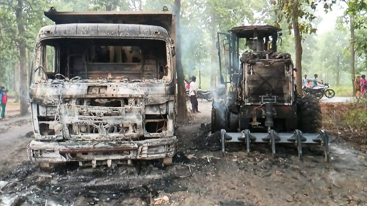 दो जेसीबी, एक बड़ा पानी टैंकर, एक ग्राइंडर मशीन तथा एक कैंपर वैन शामिल है। वहीं प्रत्यक्ष दर्शनीय का कहना है कि बीती रात लगभग 7 की संख्या में अपराधी आयें, और खड़ी गाड़ियों में आग लगा दी।