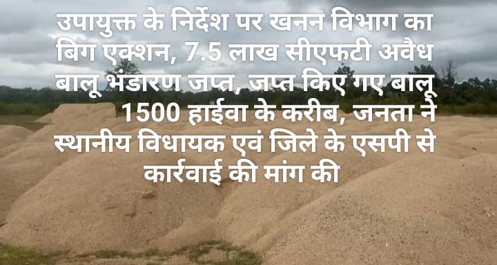 ऐसे कई अहम सवाल है जो जिले वासियों के मन में सवाल उत्पन्न कर रही हैं। एक दिन पूर्व ही ईचागढ़ थाना क्षेत्र में जिले की सबसे बड़ी कार्रवाई उपायुक्त नीतीश कुमार सिंह के निर्देशानुसार खनन पदाधिकारी ज्योति शंकर सतपति के नेतृत्व में खनन विभाग के टीम द्वारा जारगोडीह और बिरिडीह में साढ़े सात लाख घनफीट अवैध बालू भंडारण जप्त किया गया। जप्त किए गए अवैध बालू ,1500 हाईवा के करीब बताया जा रहा हैं, जिसकी अनुमानित लागत 2 से 3 करोड रुपए तक बताया गया है। अवैध खनन एवं परिवहन पर रोक लगाने के लिए उपायुक्त के निर्देश पर जिले के विभिन्न थाना क्षेत्र में कार्रवाई की जा रही है। इस तरह की कार्रवाई निरंतर की जा रही है, लेकिन जब ईचागढ़ थाना क्षेत्र की बात होती है तो इस कार्रवाई में कुछ फर्क दिखने लगते हैं। अमूमन जिले के विभिन्न थाना क्षेत्र में कुछ ट्रैक्टर, जेसीबी एवं कुछ हजार सीएफटी अवैध बालू भंडारण जप्त होती है। लेकिन जब ईचागढ़ में कार्रवाई होती है, तो 1- 2 लाख नहीं, साढ़े सात लाख सेफ्टी अवैध बालू भंडारण जप्त किया जाता है। इस कार्रवाई को करने के लिए जिला मुख्यालय से लगभग 70 किलोमीटर का दूरी तय कर खनन पदाधिकारी पहुंचकर कार्रवाई करती है। इस तरह की कार्रवाई ईचागढ़ थाना क्षेत्र में एक बार नहीं, कई बार खनन पदाधिकारी द्वारा की गई है। अहम सवाल उठता है कि ईचागढ़ थाना क्षेत्र में इतने बड़े एरिया में अवैध बालू भंडारण किया जा रहा है, इस अवैध बालू भंडारण के लिए कई सारे ट्रैक्टर उपयोग किया गया होगा, जेसीबी भी लगे होंगे एवं इस अवैध बालू भंडारण को उठाकर वाहन में लोड करके जिले के विभिन्न थाना क्षेत्र में भी भेजा जाता होगा। जिसकी सीसीटीवी फुटेज चांडिल टोल प्लाजा से निकल सकती हैं।