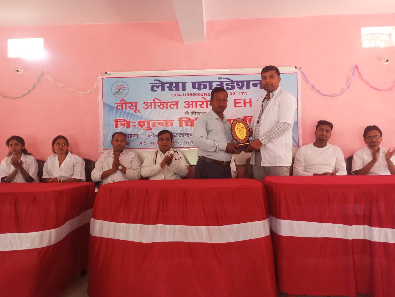 आज दिनांक 30 मार्च 2025 को लेसा फाउंडेशन एवं तीसु अखिल आरोग्य EH सेंटर के सौजन्य से कुरची ग्राम के लेसा पुस्तकालय में निःशुल्क चिकित्सा शिविर का आयोजन किया गया। शिविर का मुख्य अतिथि JBKSS युवा मोर्चा के केंद्रीय अध्यक्ष कुश महतो विशेष रूप से उपस्थित रहे। शिविर में EH चिकित्सा क्षेत्र के पैरालायसिस विशेष डॉ0 आर0 के0 सिंह, किडनी का पथरी रोग विशेषज्ञ डॉ. सुमायु, पेट एवं पाइल्स रोग विशेषज्ञ डॉ. हेमंत कुमार, स्त्री रोग विशेषज्ञ सीता कुमारी एवं संगीता कुमारी, त्वचा(चर्म) रोग विशेषज्ञ डॉ. राजकिशोर महतो, सामान्य रोग विशेषज्ञ डॉ. अमरदीप महतो, जाँच विभाग(हीमोग्लोबिन, शुगर, रक्तचाप) में डॉ. अनिल महतो, कमल महतो एवं मंजीत महतो, मेडिसिन विभाग में विकास महतो, शक्ति महतो एवं कपिल महतो शिविर में उपस्थित हुए एवं अपना सेवा दिए। इस अवसर पर लेसा फाउंडेशन के निदेशक कमल किशोर महतो, ओमप्रकाश हरिजन, अनुज महतो रहे। शिविर का सफल आयोजन में लेसा फाउंडेशन के सदस्य निरंजन महतो, दिलीप महतो,बिरजू विश्वकर्मा, मुकेश महतो, गणेश महतो, प्रकाश महतो एवं धीरेन महतो का विशेष योगदान रहा।