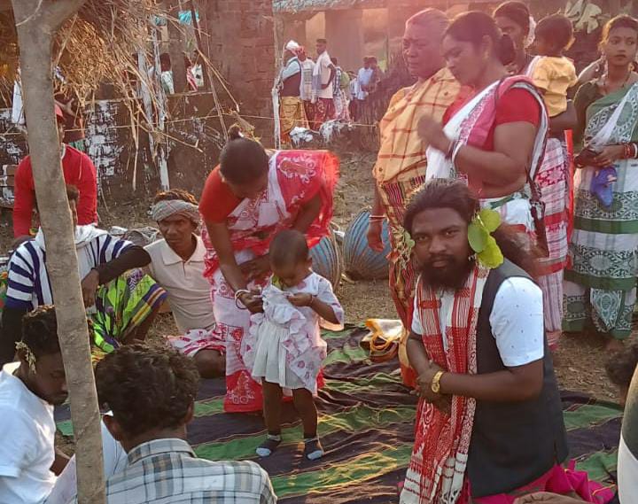 साथ ही पारंपरिक वस्त्र पहन कर मांदर ढोल नागड़ा के साथ आदिवासी महिला पुरुष नृत्य करते देखे गये।सभी अतिथियों का पारंपरिक वस्त्र देकर स्वागत किया गया।