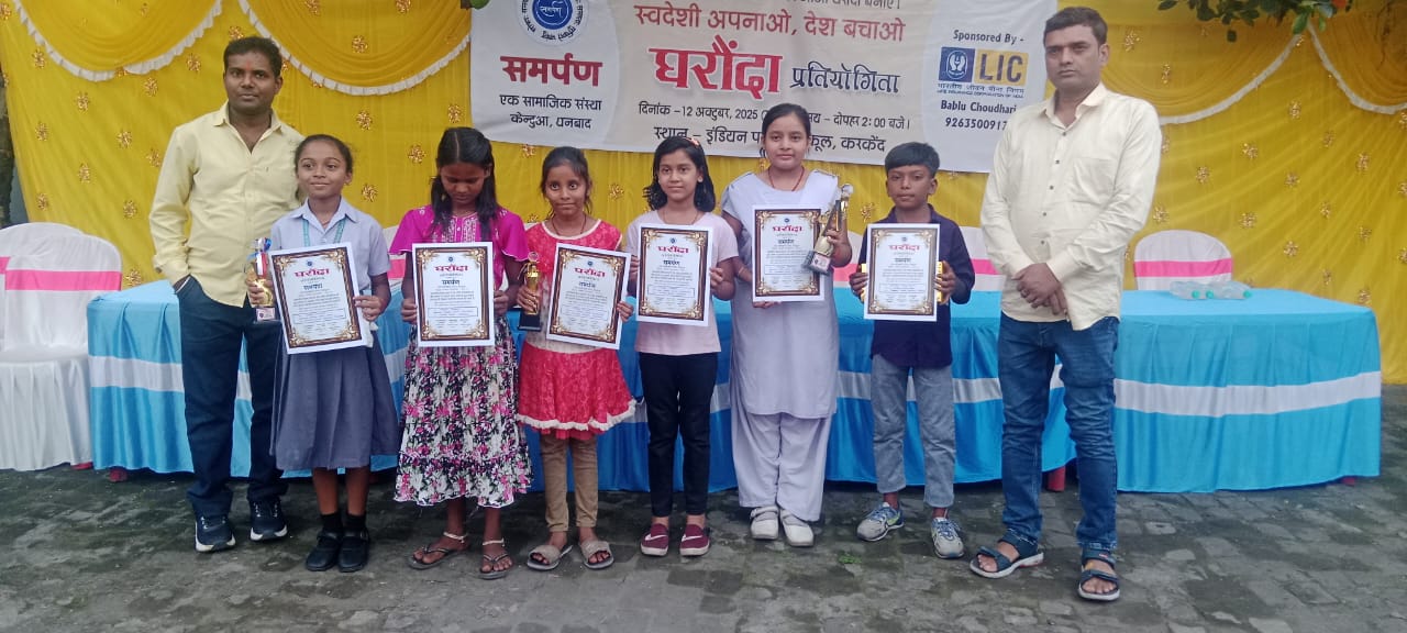 केंदुआ : समर्पण संस्था द्वारा आज इंडियन पब्लिक स्कूल करकेन्द में 2025 घरौंदा प्रतियोगिता का आयोजन किया गया। इस कार्यक्रम का मुख्य उद्देश्य विभिन्न विद्यालयों के छात्र-छात्राओं को उनके कला के प्रति प्रोत्साहित करना है। समर्पण संस्था द्वारा “घरौंदा” प्रतियोगिता जैसे कार्यक्रम को करना बहुत ही सराहनीय और विद्यार्थियों को प्रोत्साहित किया जानेवाला प्रयास साबित हो रहा है। इस कार्यक्रम को सफल बनाने में मुख्य अतिथि के रूप में धनबाद विधायक राज सिन्हा ने अपना बहुमूल्य समय निकाल कर विभिन्न विद्यालयों से आये छात्र-छात्राओं द्वारा स्वनिर्मित “घरौंदों” को देखा और उन्हें आशीर्वाद दिए तथा उत्साहवर्धन के साथ उनकी उज्ज्वल भविष्य की कामना किए।वहीं सर्वप्रथम विद्यालय परिवार द्वारा माननीय विधायक को अंगवस्त्र और बुके देकर सम्मानित किया गया।घरौंदा प्रतियोगिता में प्रथम पुरस्कार, द्वितीय पुरस्कार, तृतीय पुरस्कार एवं सांत्वना पुरस्कार दिया गया। समर्पण संस्था द्वारा इस प्रकार के और भी सामाजिक कार्य संस्था द्वारा विगत कई वर्षों से किया जाता रहा है। इस कार्यक्रम को सफल बनाने में विशेष अतिथि गोविंदा राऊत(पार्षद प्रतिनिधि), विजय कुमार शर्मा(अध्यक्ष), विकास पाठक (सचिव), बबलू चौधरी (कोषाध्यक्ष), वेदप्रकाश दुबे, लवकुश सरोज, संतोष बढ़ई समेत संस्था के अनेकों कार्यकर्ता और अभिभावक मौजूद रहे।