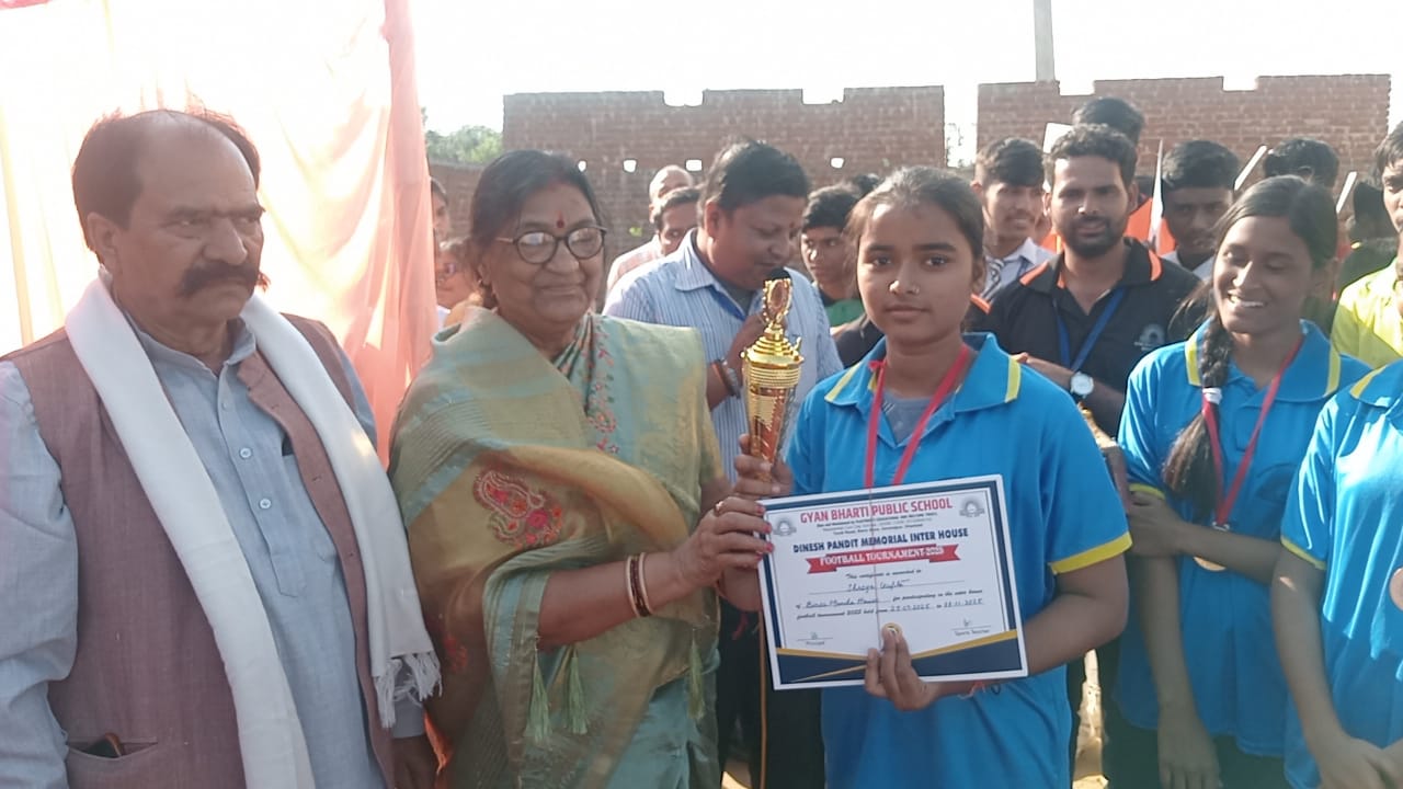 ज्ञान भारती पब्लिक स्कूल ब रियों मोड गोविंदपुर स्थित पंडित दिनेश मेमोरियल अंतर्गत सदनीय फुटबॉल टूर्नामेंट 8 /11/ 2025 का समापन समारोह का आयोजन किया गया ।