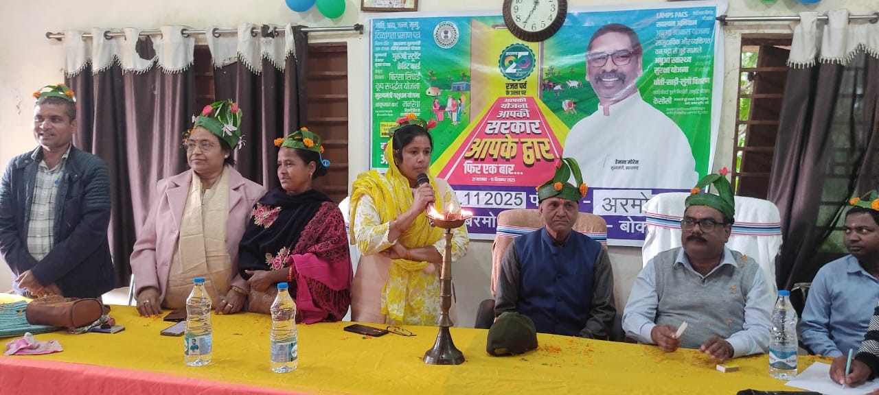 अरमो पंचायत सचिवालय भवन में शुक्रवार को आपकी योजना- आपकी सरकार- आपके द्वार कार्यक्रम का आरंभ किया गया। कार्यक्रम का उदघाटन जिप सदस्य शहजादी बानो, बेरमो विधायक प्रतिनिधि उत्तम सिंह, बेरमो प्रखंड पशुपालन पदाधिकारी सुजात मुखर्जी, अंचल निरीक्षक रवि कुमार एवं पंचायत की मुखिया कैथरीना हांसदा ने संयुक्त रुप से दीप जला कर किया।