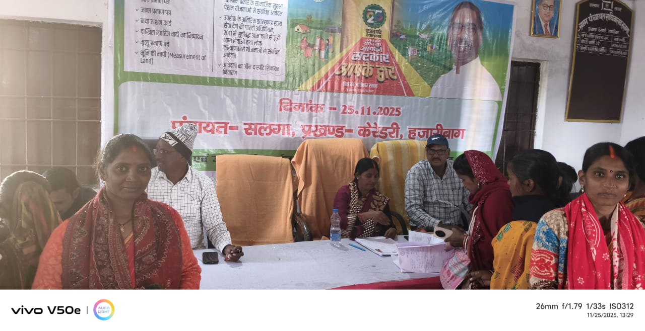 पंचायत सलगा में पंचायत भवन परिसर में कैम्प शिविर का आयोजन किया गया, कैम्प शिविर आयोजन का दीप प्रज्वलित कर अंचलाधिकारी रामरतन कुमार वर्णवाल प्रखंड विकास पदाधिकारी विवेक कुमार मुखिया महोदया श्रीमती पार्वती देवी पंचायत समिति श्रीमति मीना देवी के कर कमलों द्वारा उद्घाटन किया गया!