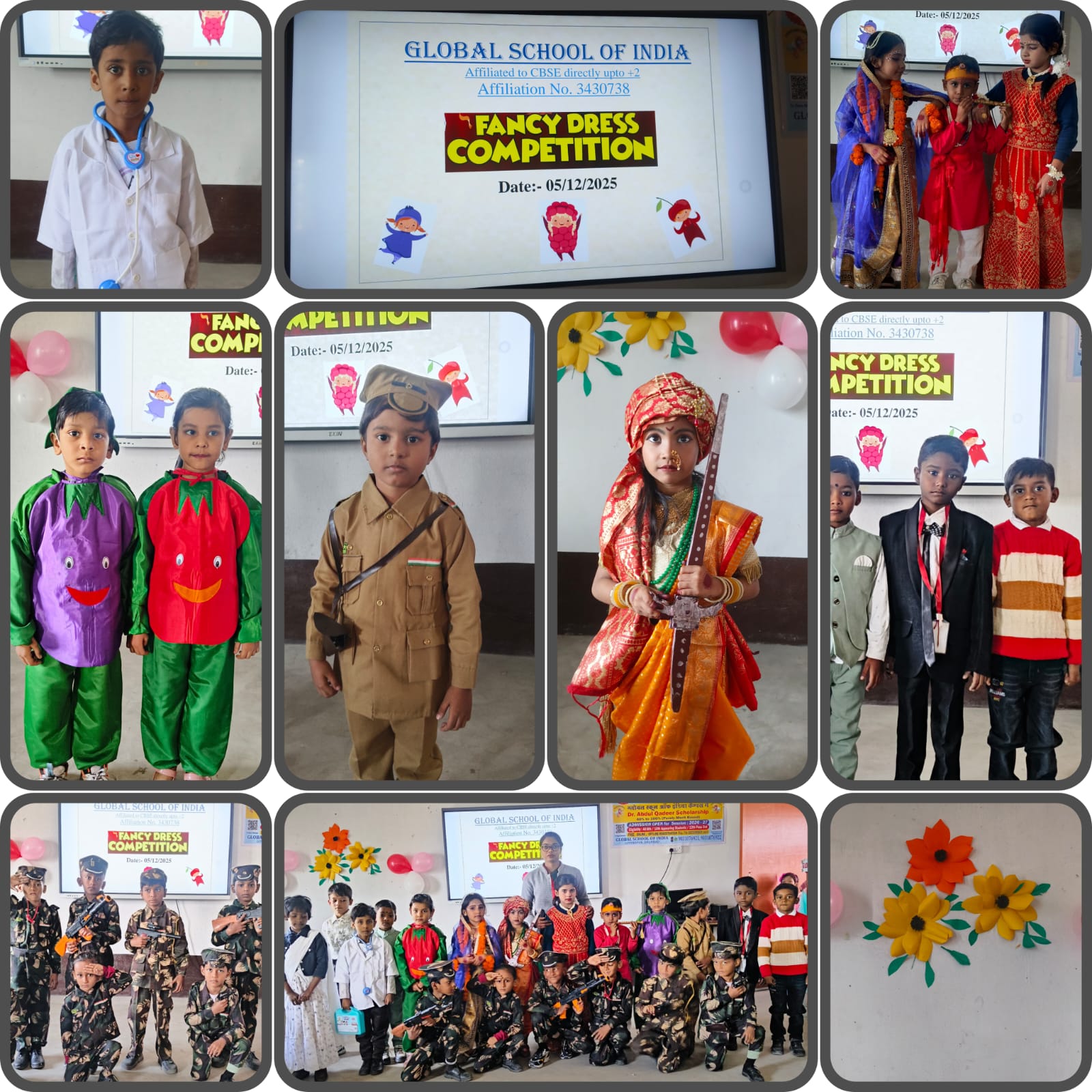 ग्लोबल स्कूल ऑफ इंडिया के प्रांगण में कक्षा नर्सरी से कक्षा द्वितीय तक के छात्र, छात्राओं के लिए रंगारंग फैंसी ड्रेस प्रतियोगिता का आयोजन किया गया।