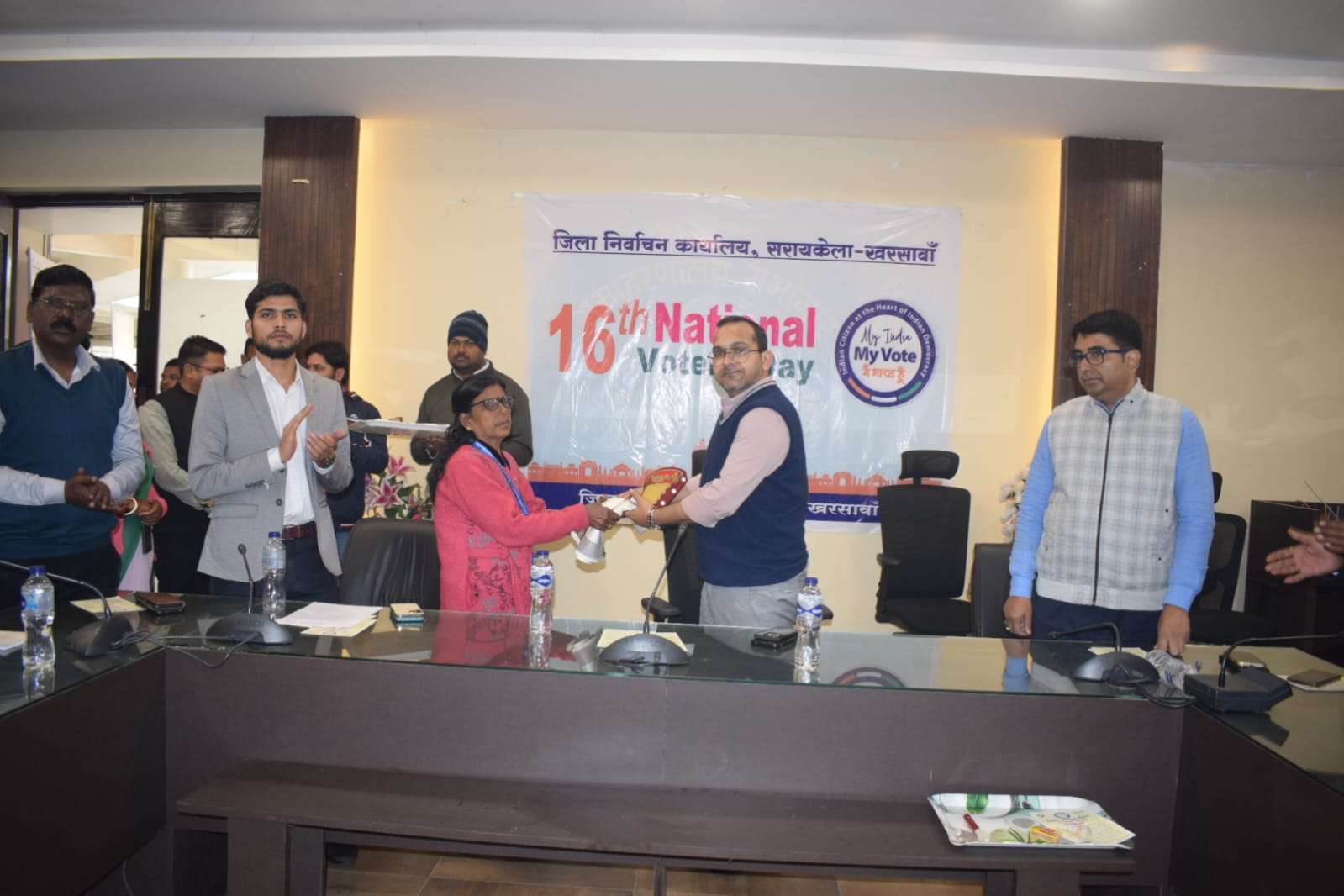 सरायकेला : समाहरणालय सभागार में जिला निर्वाचन पदाधिकारी सह उपायुक्त श्री नितिश कुमार सिंह की अध्यक्षता में राष्ट्रीय मतदाता दिवस के अवसर पर शपथ ग्रहण कार्यक्रम का आयोजन किया गया। कार्यक्रम के दौरान उपस्थित पदाधिकारियों, निर्वाचन कर्मियों एवं नागरिकों को मतदाता प्रतिज्ञा दिलाई गई।