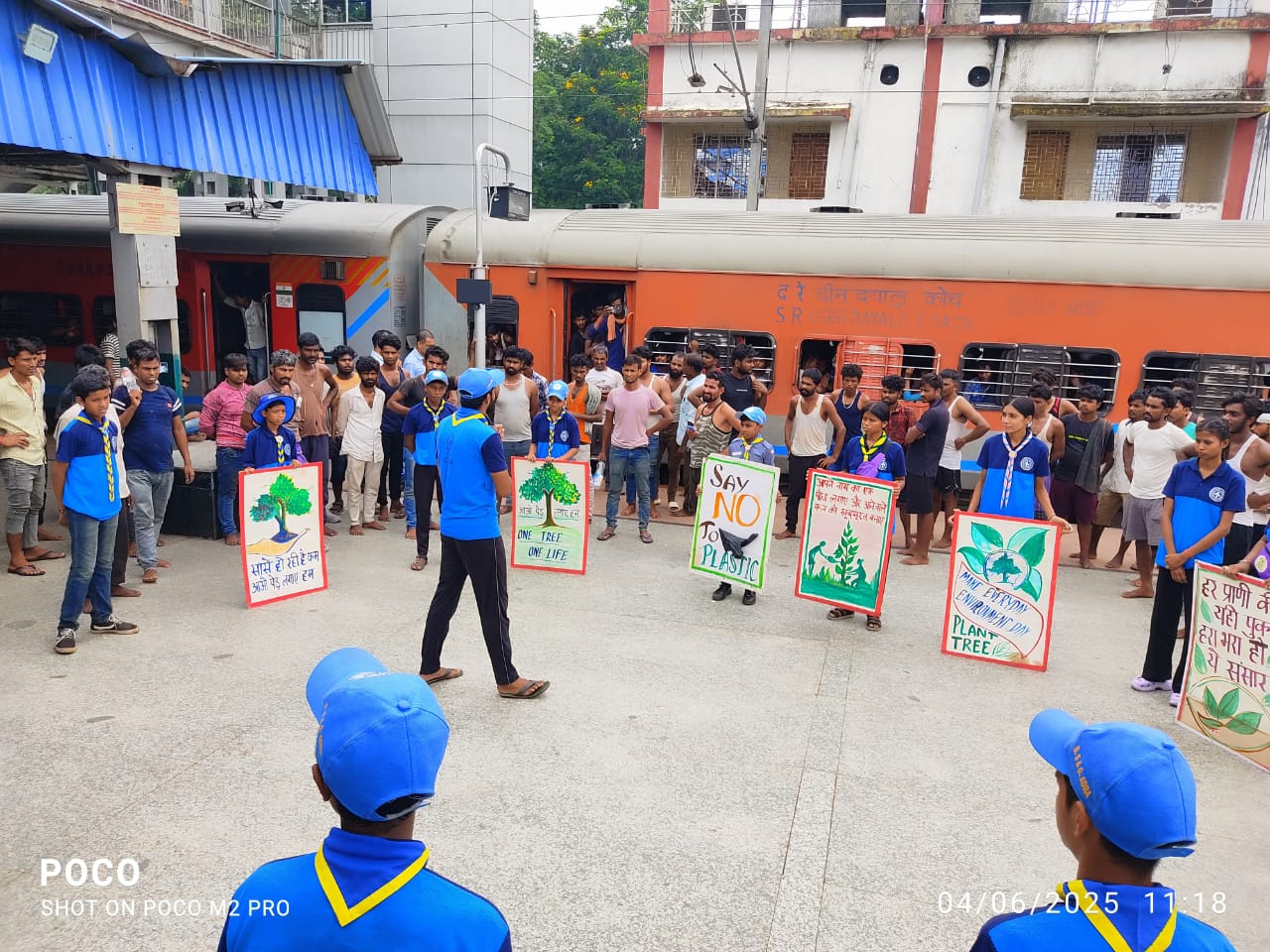 स्टेशन परिसर में स्काउट्स एवं गाइड्स के सदस्यों ने यात्रियों एवं आमजन को प्लास्टिक प्रदूषण के खतरों के बारे में जागरूक किया तथा पर्यावरण की रक्षा के लिए वृक्षारोपण भी किया गया।