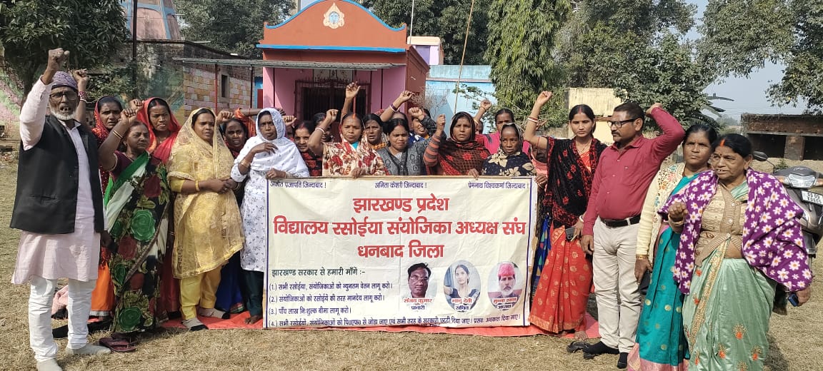 महुदा(धनबाद) झारखण्ड प्रदेश विद्यालय रसोईया संयोजिका अध्यक्ष संघ की एक आहूर्त बैठक ब्रह्मबाबा मन्दिर प्रांगण महुदा में संघ के धनबाद जिला अध्यक्ष मुन्ना खान की अध्यक्षता में सम्पन्न हुई।एवं संचालन संजय कुमार ने की।बैठक में बाघमारा प्रखंड की सभी रसोईया/संयोजिका ने अपने जिला अध्यक्ष को अपनी समस्यायों से आवगत कराते हुए कहा कि बाघमारा में कुछ विद्यालय ऐसे है जिसमे शिक्षको की समानांतर सरकार चलती है और उन्ही के द्वारा रसोईया एवं संयोजिका को बेवजह अपनी मनमानी कर परेशान किया जा रहा है।और उन्हें बात बात पर मनमर्जी विद्यालय से हटाने का धमकी दि जाती है।कुछ विद्यालय में संयोजिका को बिना सूचना दिए विद्यालय से हटा दिया गया है।इस कदर रसोईया और संयोजिका शोषण और जुल्म का शिकार हो रही है जबकि उनलोग सरकार के अधीन लगातार 20वर्षो से विद्यालय में कार्य कर रही थी।अगर उन्हें कार्य पर वापस नही लिया गया तो हमलोग न्यायालय का दरवाजा जाएंगे।इसपर जिला अध्यक्ष मुन्ना खान ने कहा कि आगामी 19