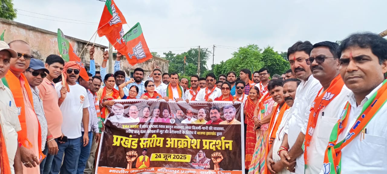 बलियापुर: भारतीय जनता पार्टी ग्रामीण जिला धनबाद के बैनर तले मंगलवार बलियापुर प्रखंड एवं अंचल कार्यालय परिसर में एक दिवसीय प्रखंड स्तरीय आक्रोश रैली एवं प्रदर्शन का आयोजन किया गया। यह कार्यक्रम भाजपा प्रदेश नेतृत्व के निर्देशानुसार पूरे