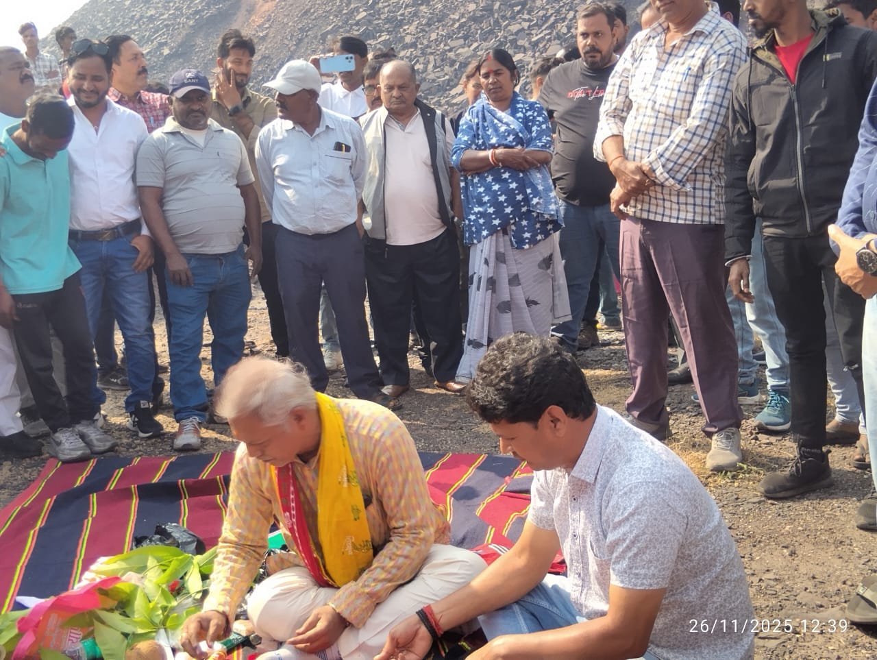 इस बीच पूजा स्थल पर स्थानीय ग्रामीणों की काफी भीड़ उमड़ पड़ी और पोकलेन मशीन द्वारा एक ट्रक ओबी लोड कर कंपनी का कार्य शांतिपूर्ण आरंभ हुई।