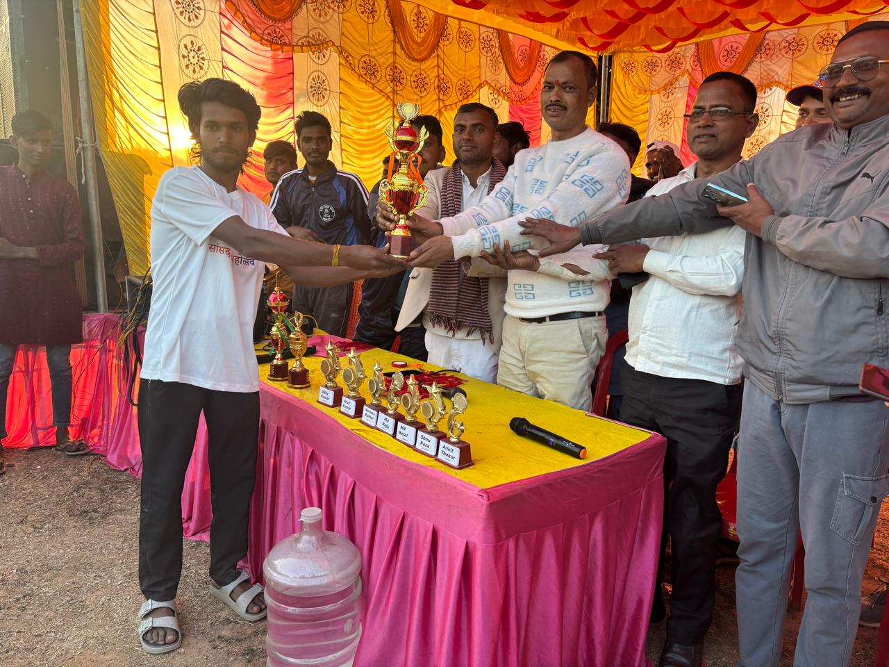 विजेता टीम को सम्मानित करने के लिए विधायक रोशन लाल चौधरी जी के आदेशानुसार मंडल प्रतिनिधि कर्मचारी साव और मुखिया दिनेश साव ने पुरस्कार वितरण किया। मौके पर चंद्रिका रजक, सुरेश राम, ऑर्गेनाइजर उदय कुमार, रविंद्र कुमार, अरुण कुमार सहित सैकड़ों दर्शक और गणमान्य व्यक्ति उपस्थित रहे।