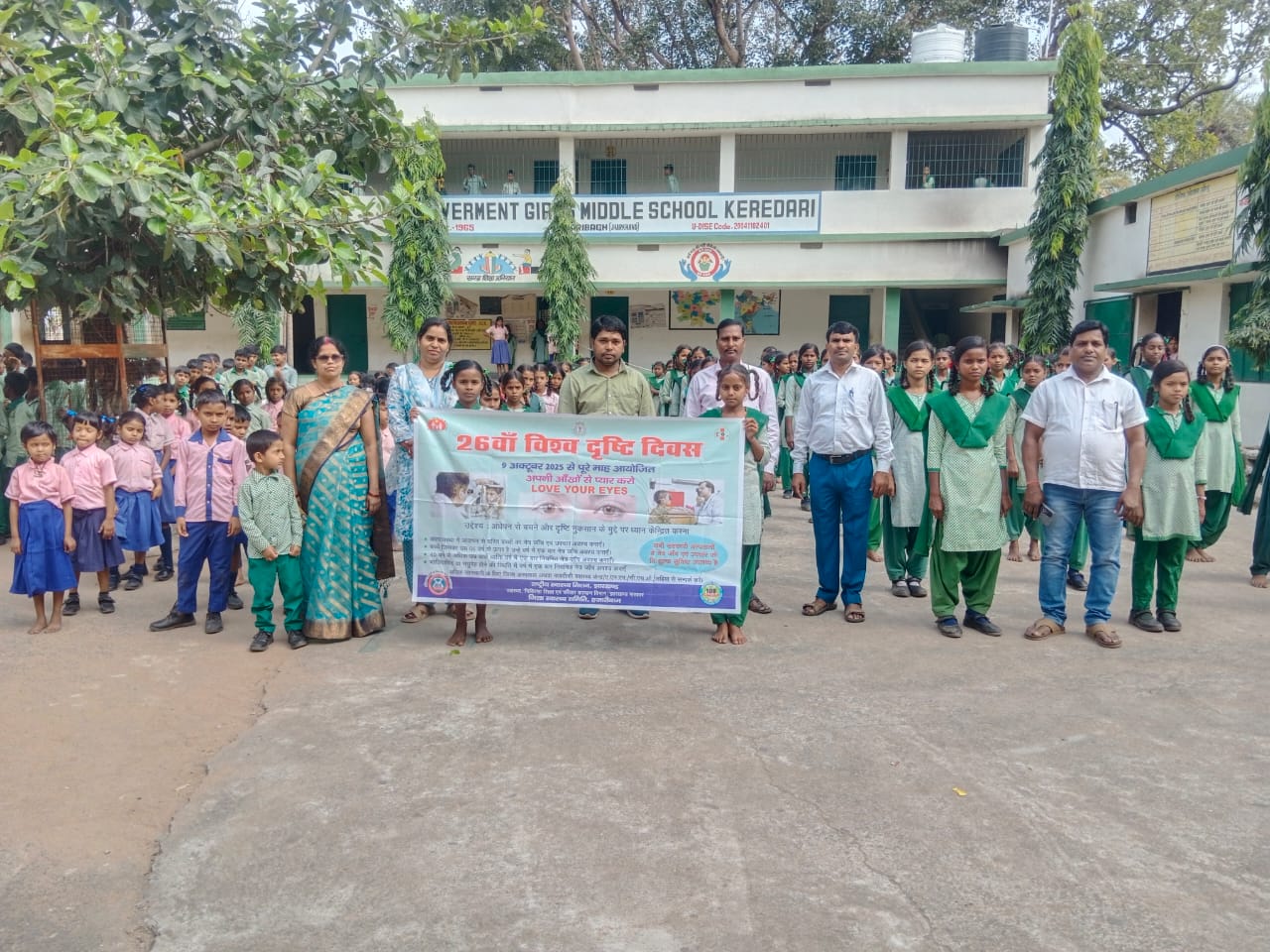 केरेडारी प्रखण्ड:कन्या मध्य विद्यालय केरेडारी में 26वा विश्व दृष्टि दिवस रैली निकाला गया जिसमें स्कूली बच्चों को अपने आंखों की देखभाल और मोबाइल फोन का उपयोग बच्चों को कम करने की सलाह दी गई , डॉक्टर वीरेंद्र कुमार की बातों को बच्चों एवं शिक्षकगण ध्यान पूर्वक सुना और समझा ,