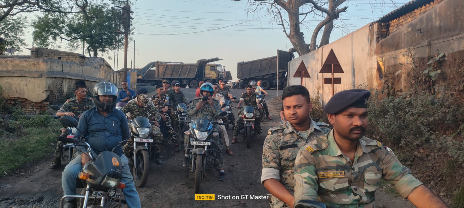 केंदुआडीह पुलिस ने बाईक से निकाला फ्लैग मार्च