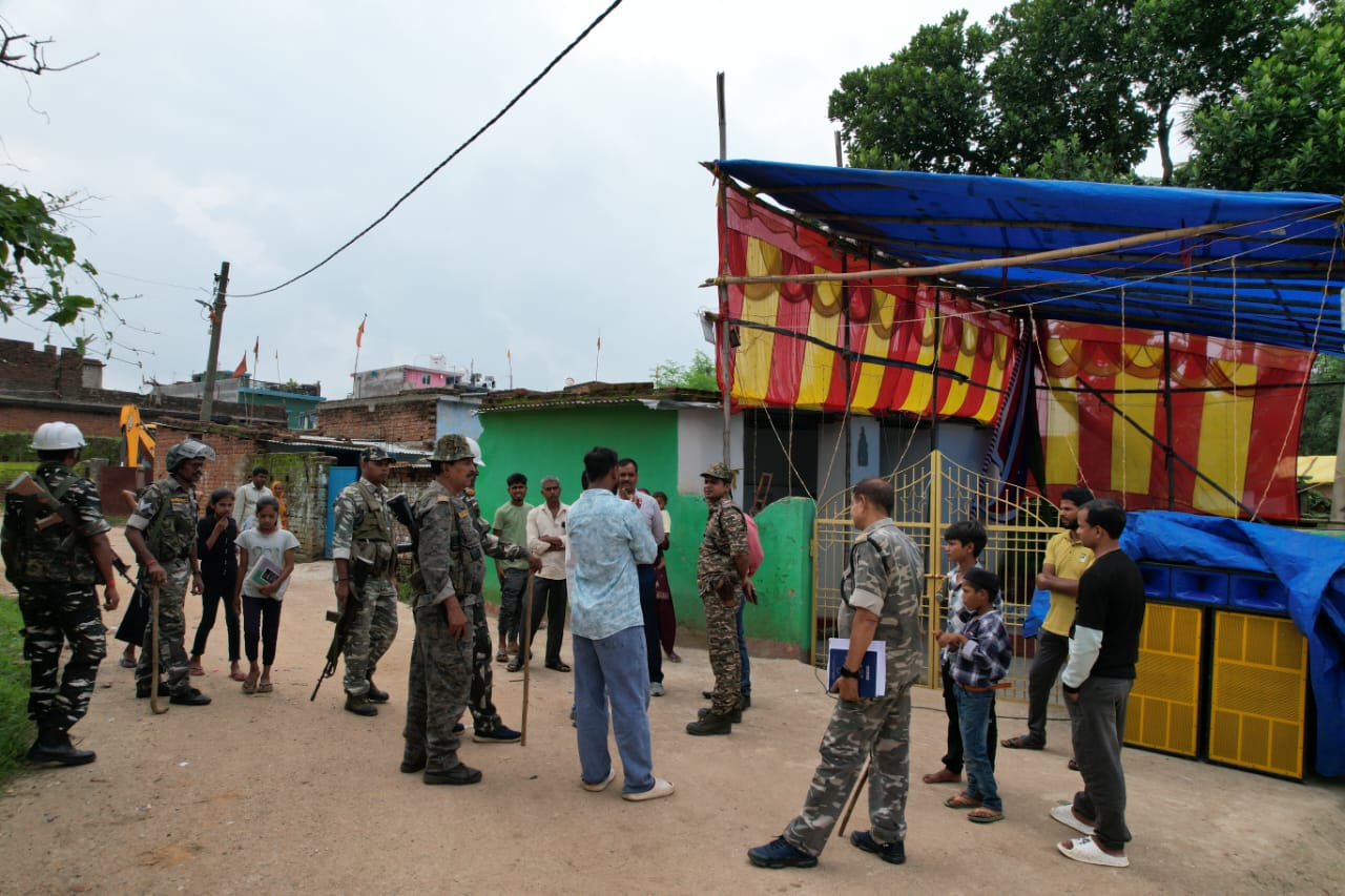 दारू थाना क्षेत्र में मुहर्रम को लेकर फ्लैग मार्च, ड्रोन से की जा रही निगरानी