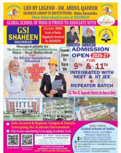 ग्लोबल स्कूल ऑफ इंडिया में शैक्षणिक सत्र 2026-27 के लिए विभिन्न कक्षाओं में प्रवेश की प्रक्रिया 1 नवंबर, 2025 से शुरू हो चुकी है।