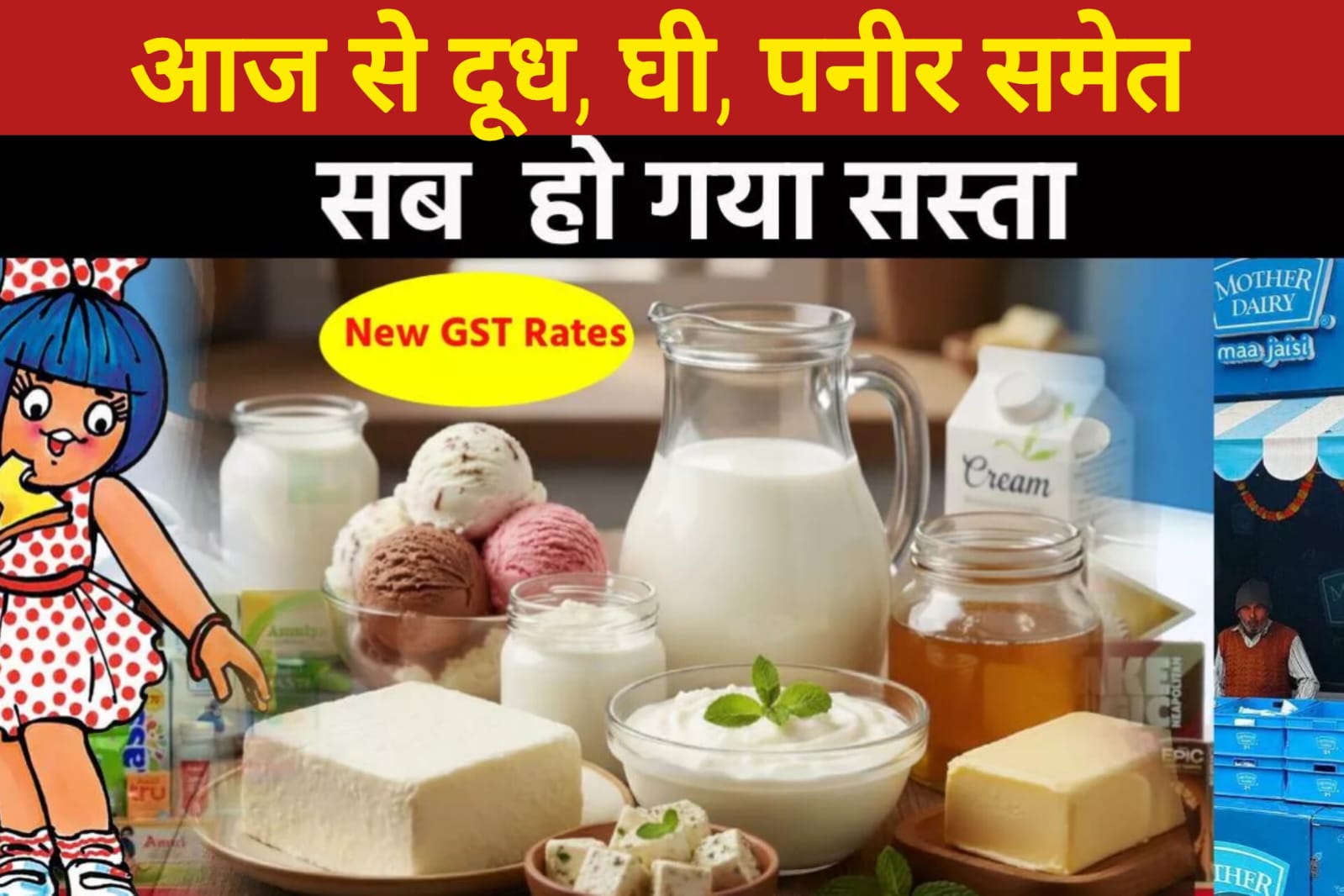 नई दिल्ली: केंद्र सरकार द्वारा जीएसटी दरों में कटौती के बाद आज, 22 सितंबर से आम जनता को बड़ी राहत मिली है। टीवी, फ्रिज जैसे बड़े इलेक्ट्रॉनिक सामानों के साथ-साथ कई खाद्य सामग्री की कीमतों में भी कमी आई है। दूध और उससे बने उत्पाद आज से काफी सस्ते हो गए हैं, जिससे घरेलू बजट पर सीधा सकारात्मक असर पड़ेगा।
