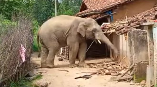स्थानीय लोगों ने बताया कि दो हाथी था, एक हाथी गांव में कटहल, आम आदि खाने में मशगूल था। दूसरा हाथी भोजन के तलाश में लखिन्द्र टुडू के घर के आसपास घूम रहा था।