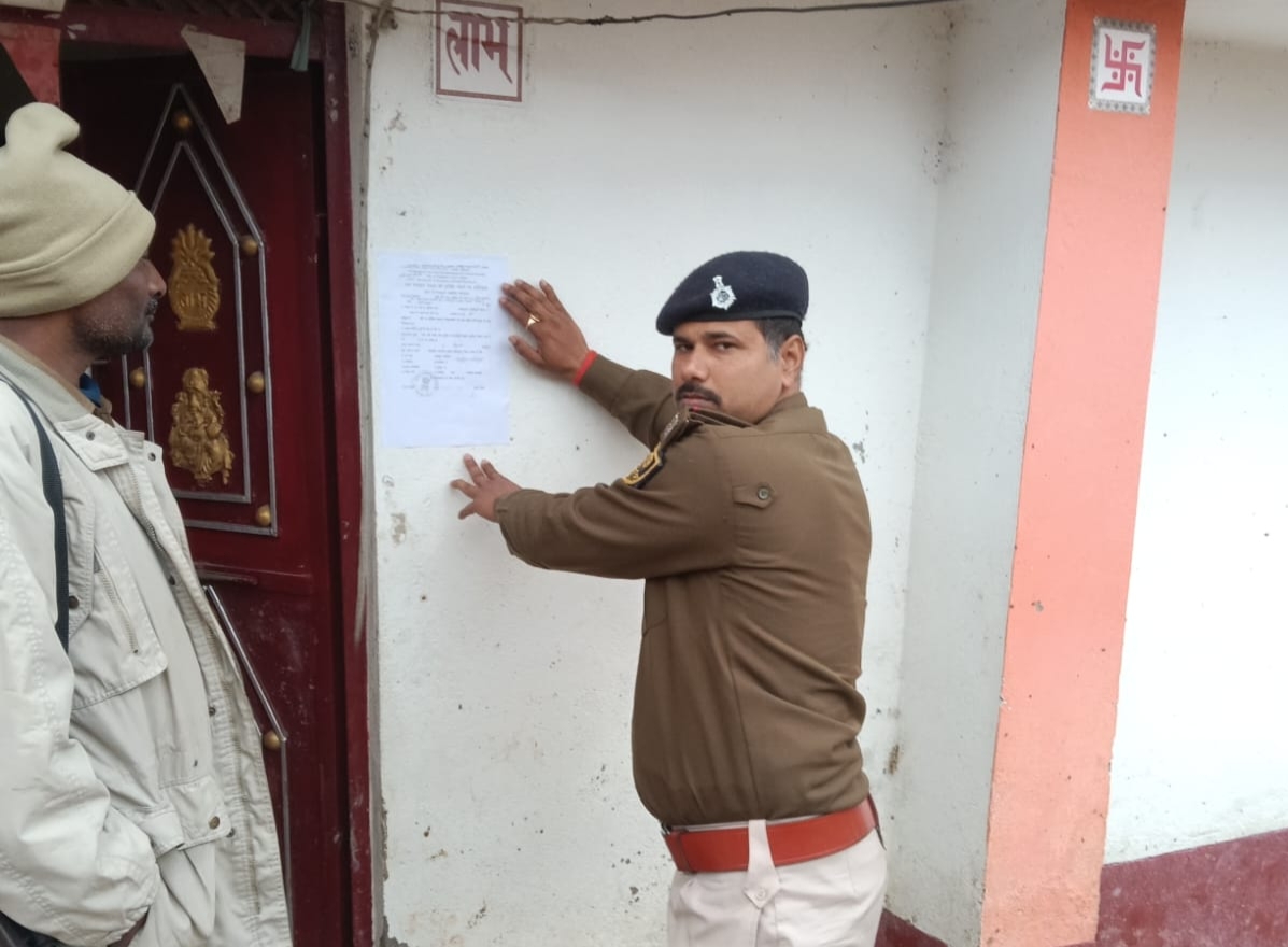 हत्या के प्रयास मामले में फरार चल रहे सात अभियुक्तों के घर पुलिस ने चिपकाया इश्तेहार
